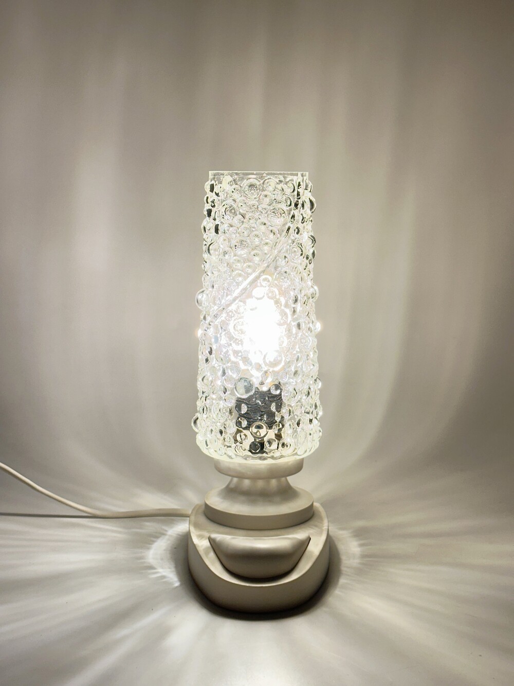 80년대 벨기에 Massive 사에서 만들어진 빈티지 글라스 버블 램프에요. 몽글몽글한 디테일 덕분에 주변 빛 번짐이 아름답게 펼쳐진답니다.