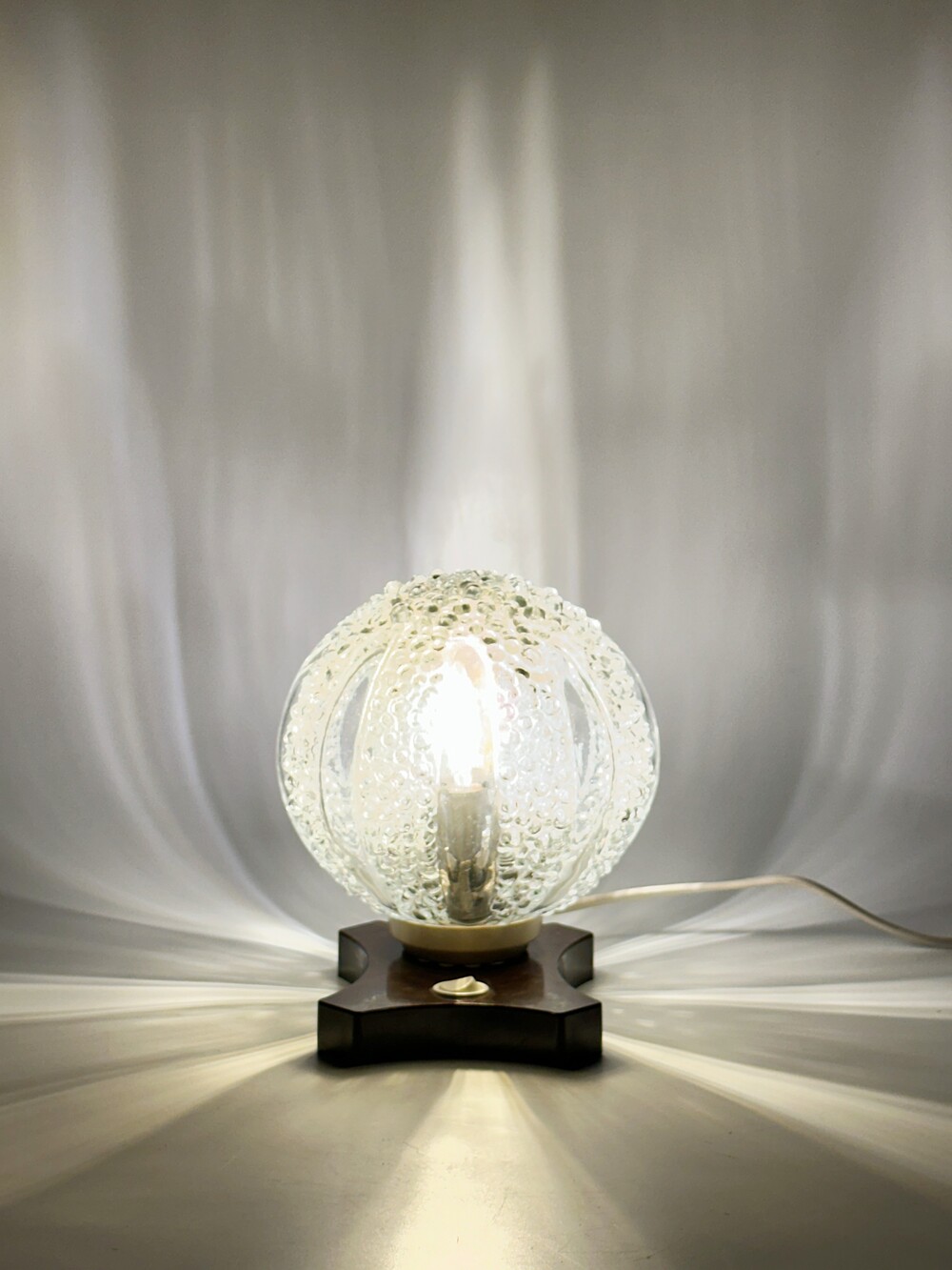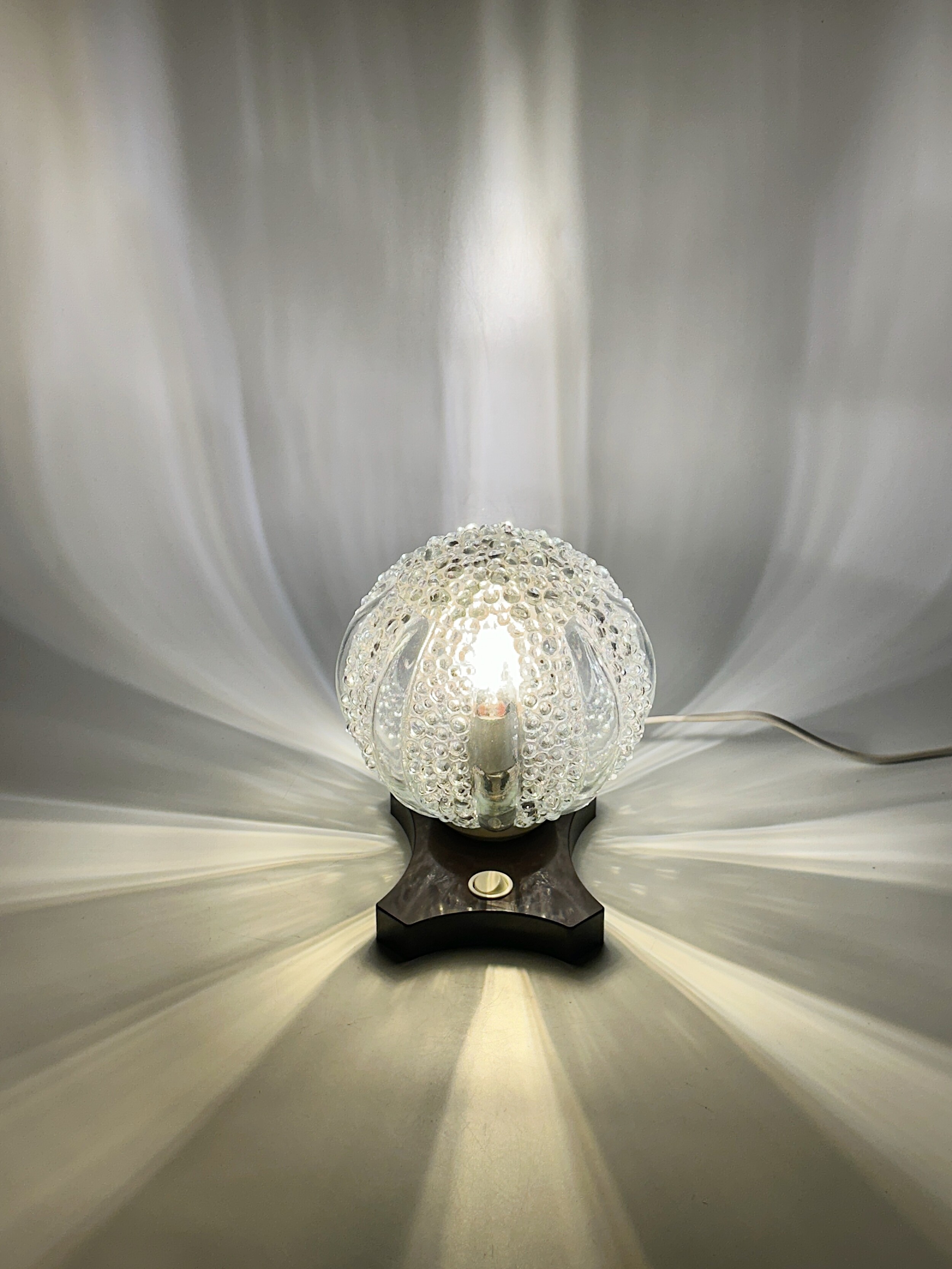 독일에서 넘어온 70년대 Saku 사의 빈티지 글라스 볼 조명이에요. 둥근 글라스가 돋보이며, 글라스 표면에 정교하게 새겨진 디테일은 빛을 아름답게 산란시켜 고급스러운 분위기를 느끼실 수 있답니다. ✨