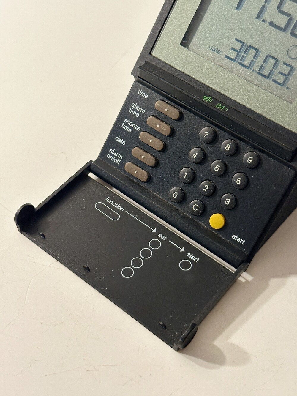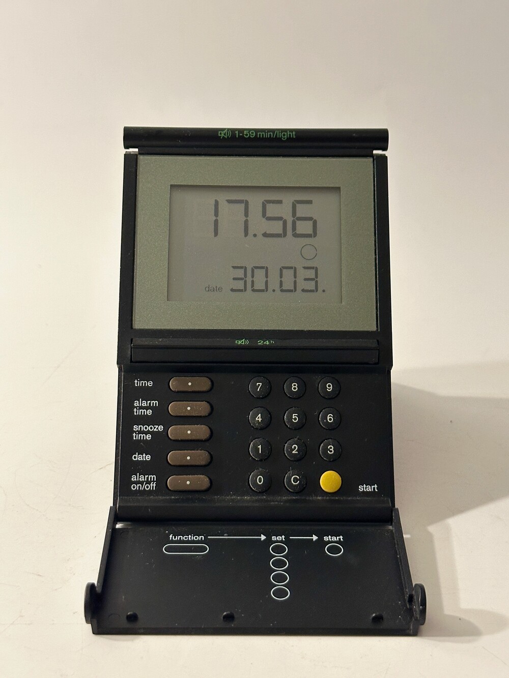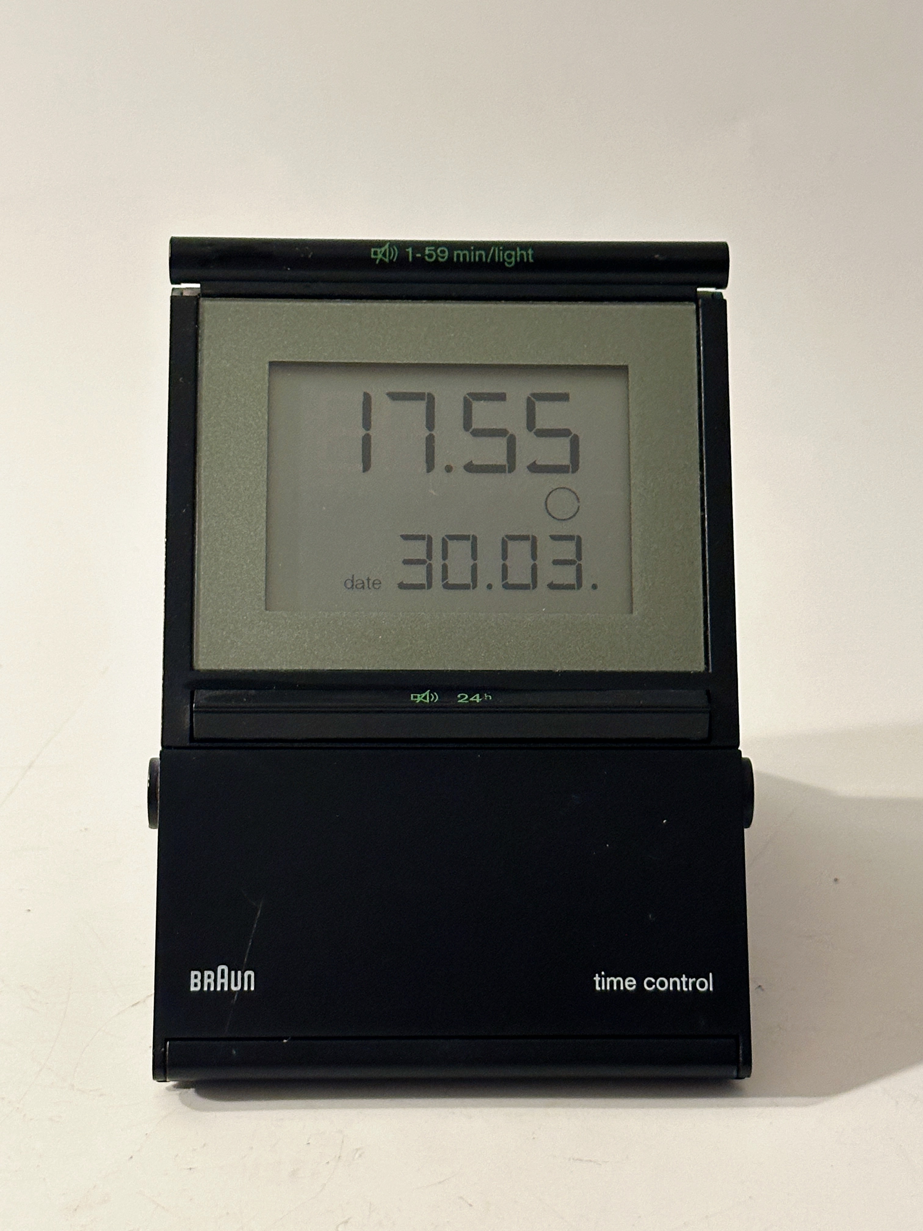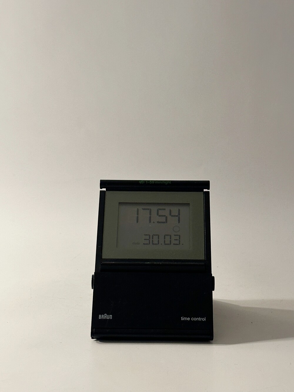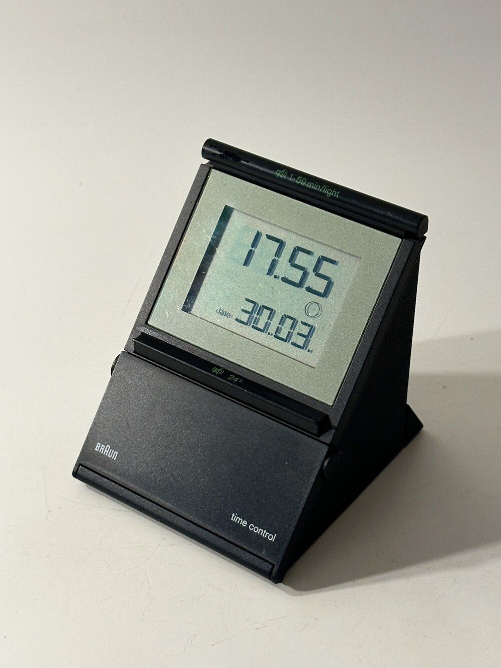 90년대 독일 Braun에서 만들어진 디지털 시계 DB 10 fsl 입니다. 작고 가벼운 크기라 여행용으로더 훌륭합니다. 또한 누구나 쉽고 간단하게 시용할 수 있도록 직관적입니다. 무소음 제품이며 24시간 형식 및 알람기능도 문제없이 작동이 잘 되고 있습니다. 상단에 조명 기능까지 문제없이 작동이 되고 있어 침대 옆 수면용으로도 추천드립니다 ⏰