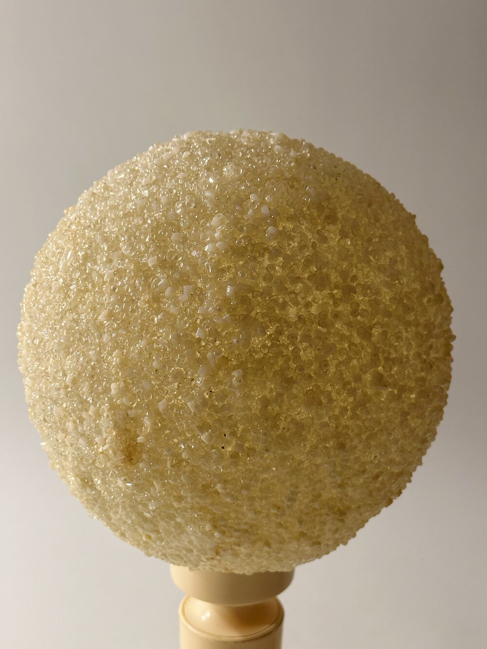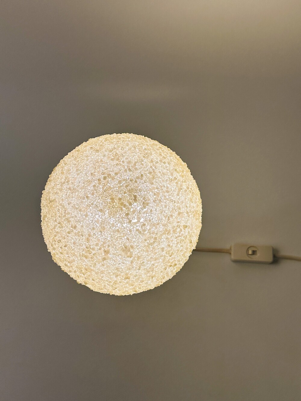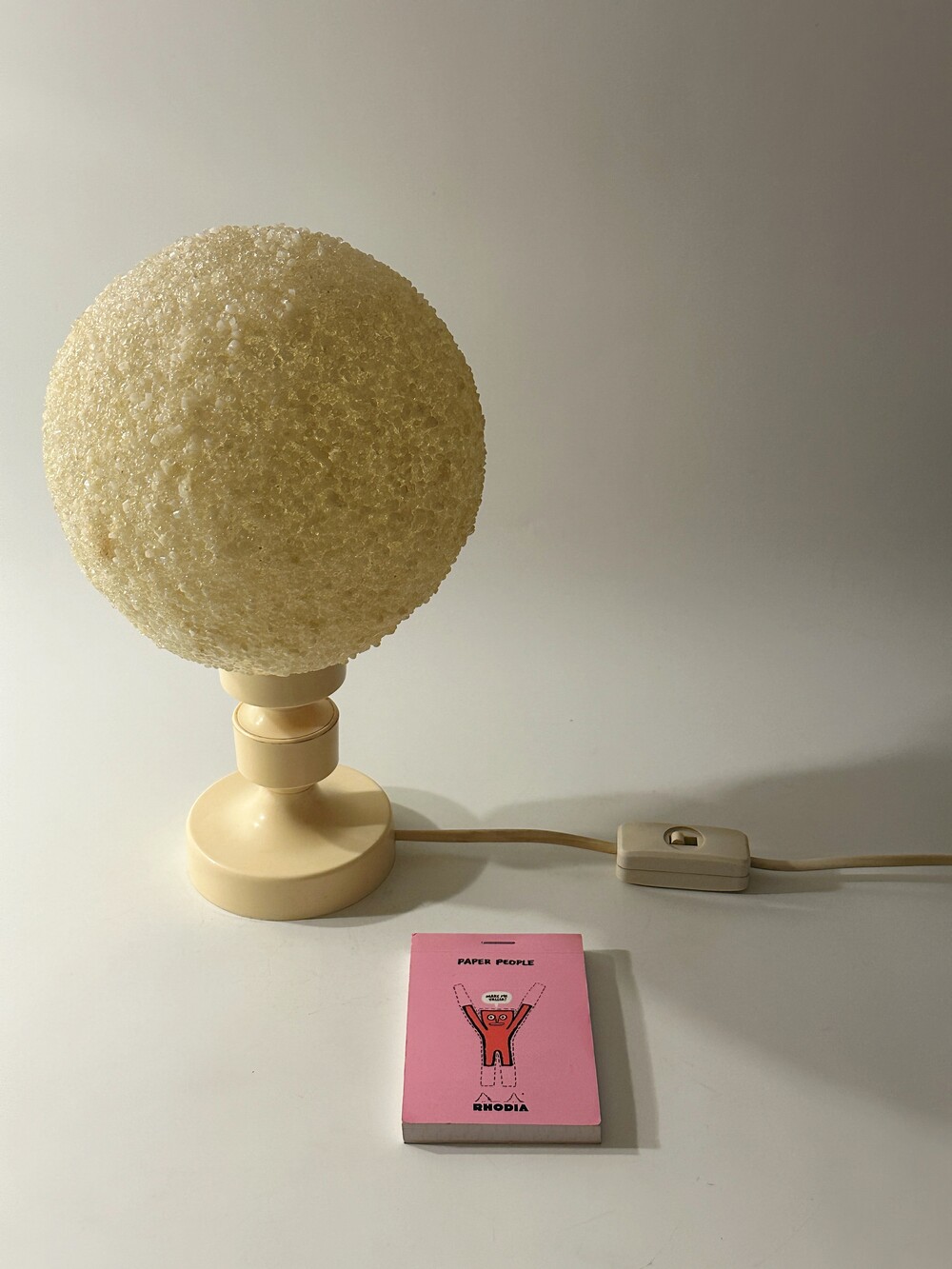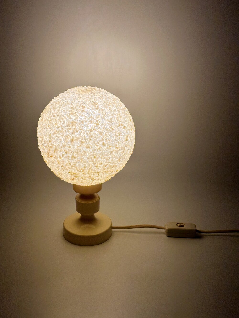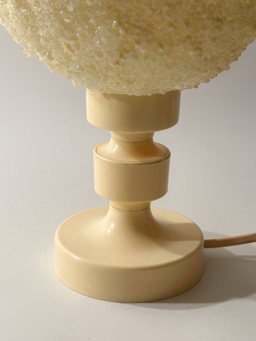 공기 방울들이 그대로 굳어버린 것처럼 기포 텍스처들이 인상적인 독일에서 넘어온 80년대 빈티지 조명이에요. 보통 일반적으로 글래스를 사용하는 것과 다른 질감의 빛 번짐을 만들어내요. 은은하고 따뜻하게. 헤드와 베이스의 톤은 동일하게 크리미한 컬러로 에이징이 되어 세월의 흔적을 그대로 느끼며 사용할 수 있습니다. 협탁 혹은 낮은 선반에 두면 조용하고 깊은 무드를 즐길 수 있을 것 같아요 ✨