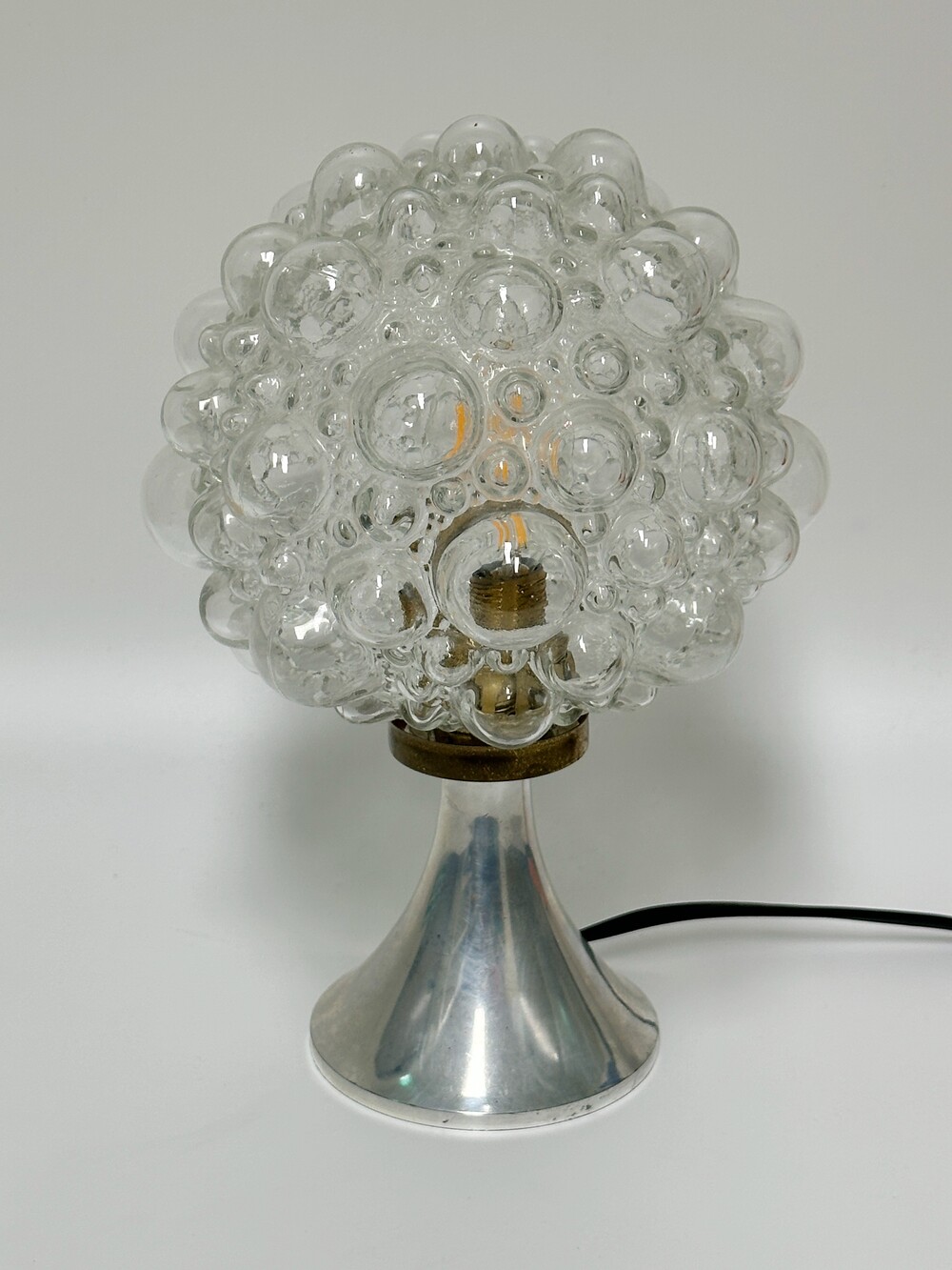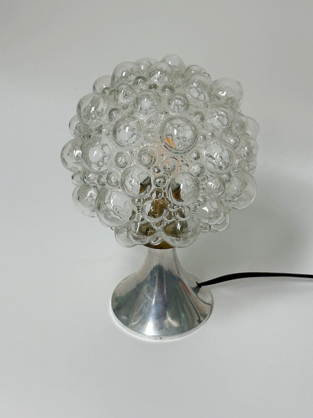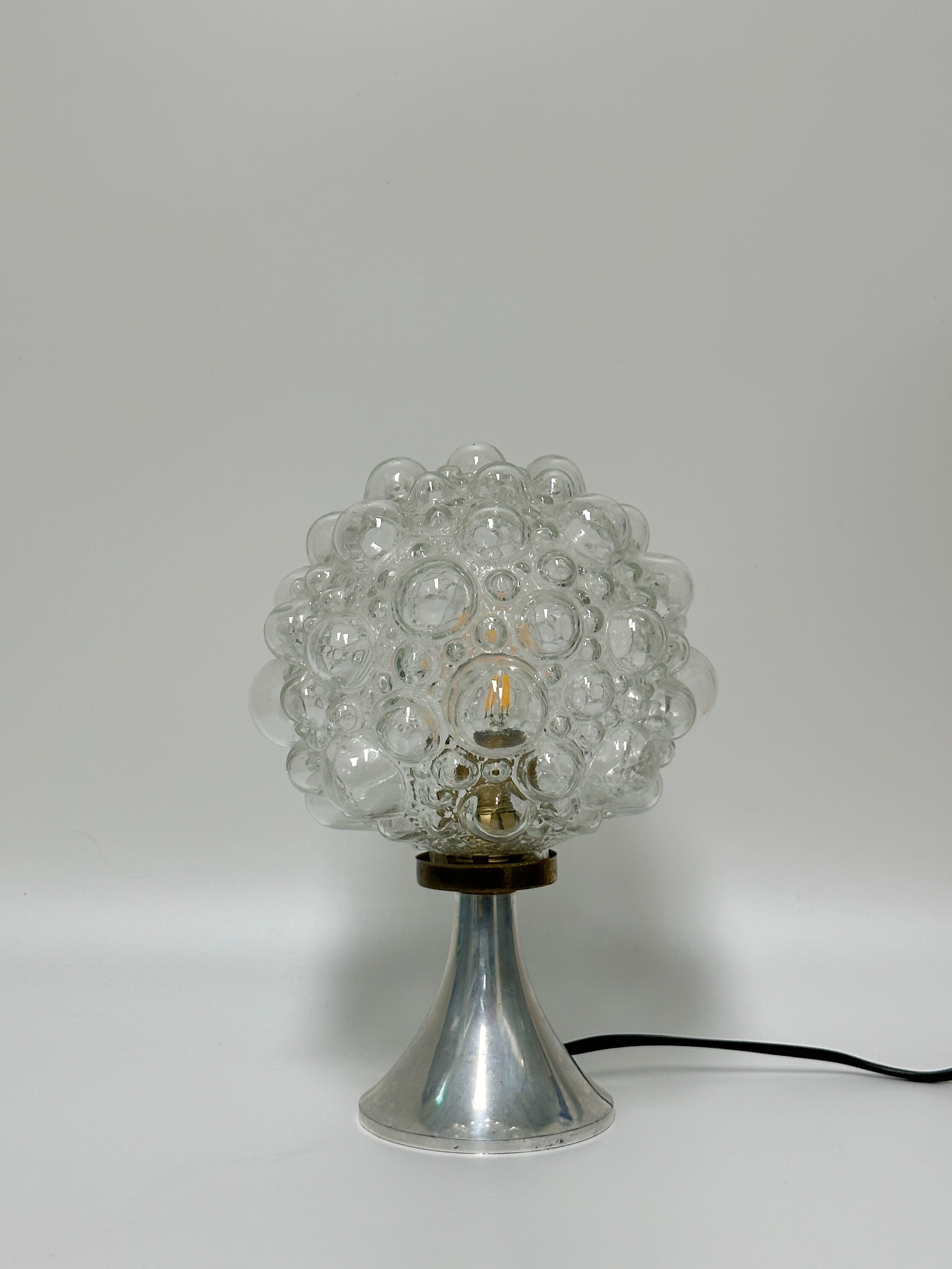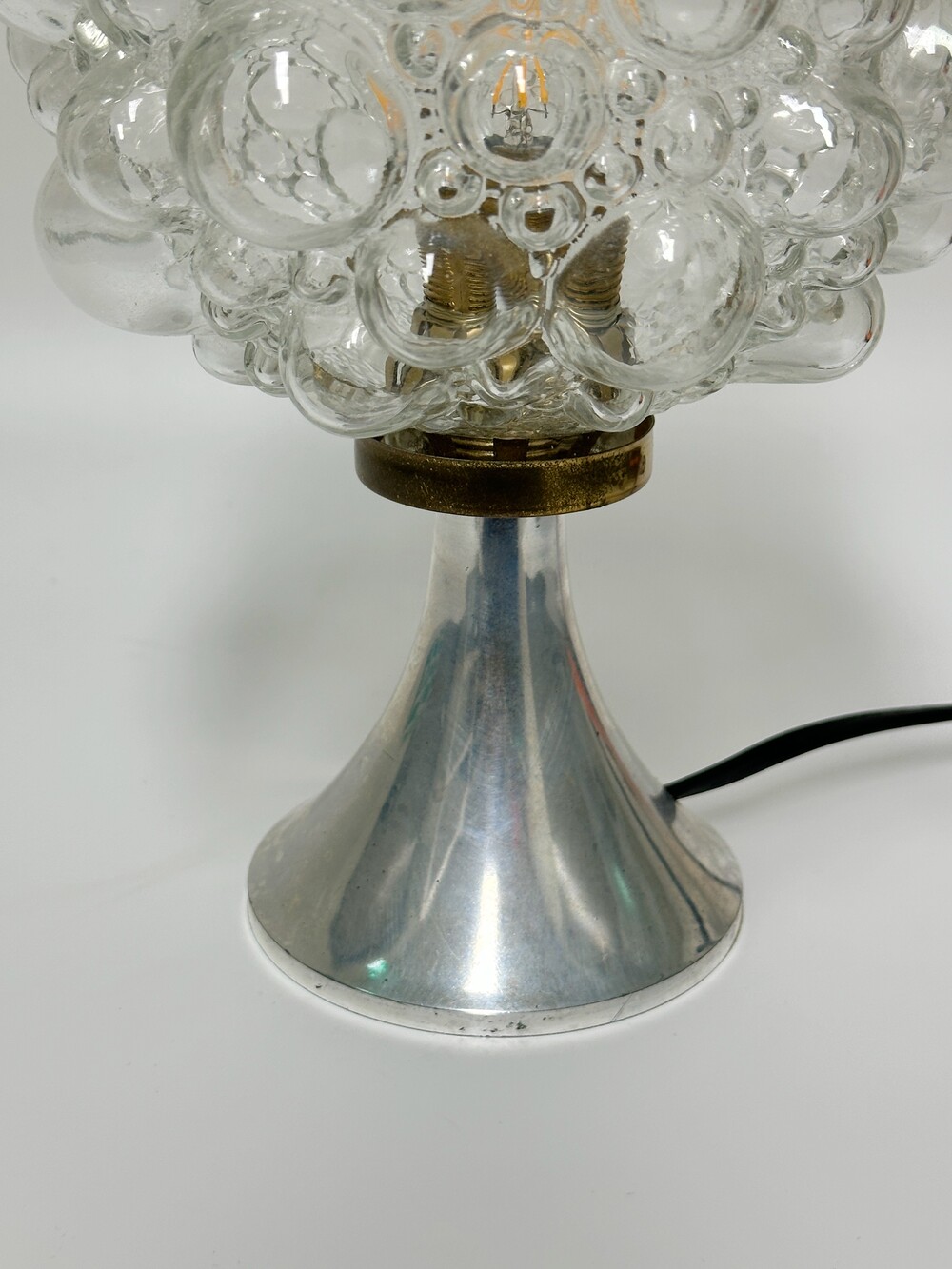 80's Germany Vintage Bubble Glass Table Lamp Silver