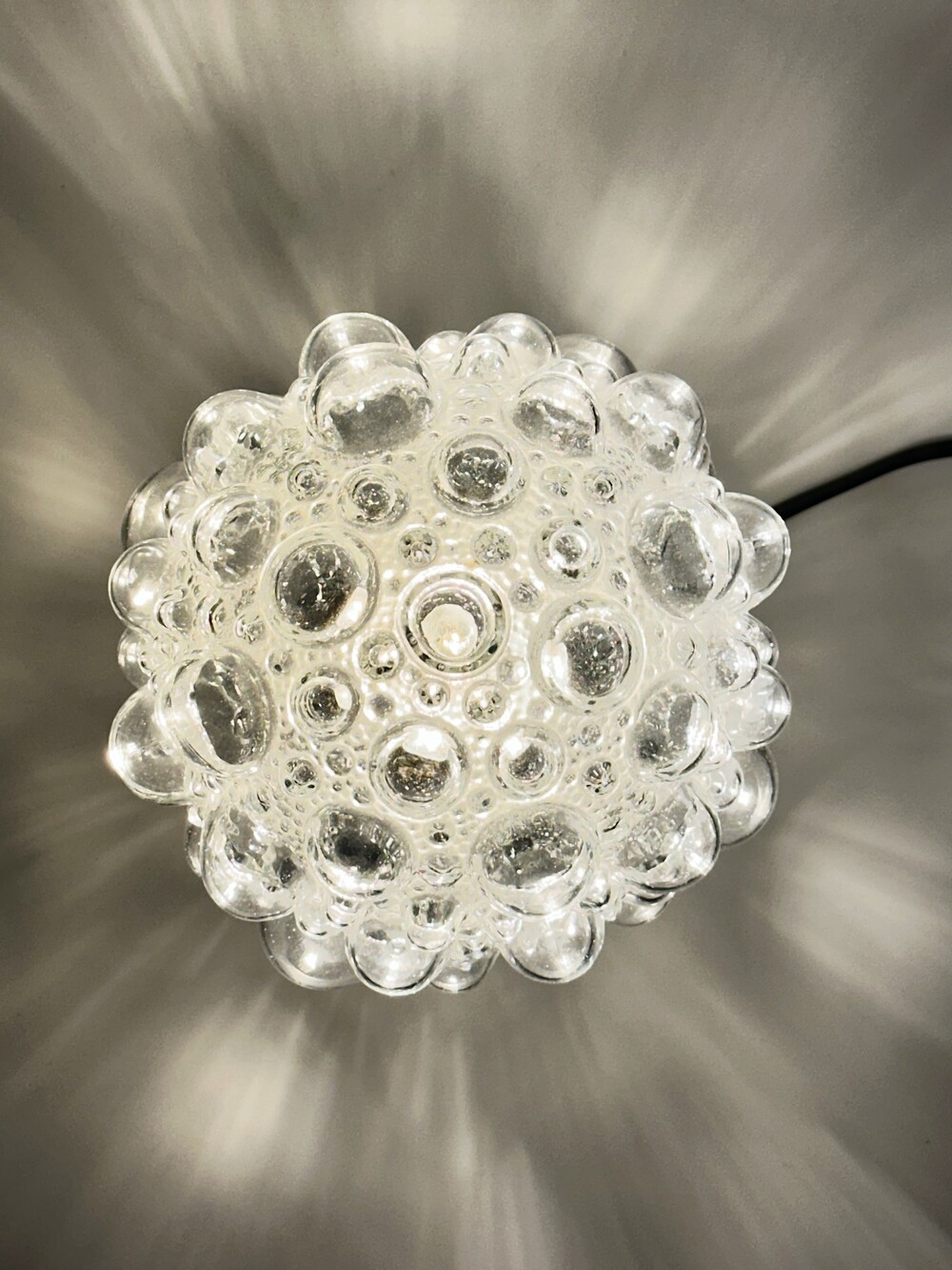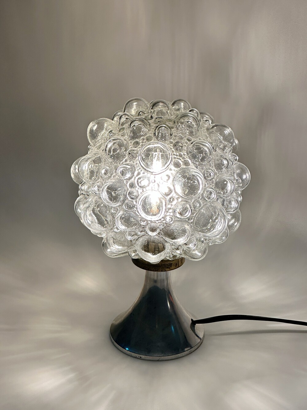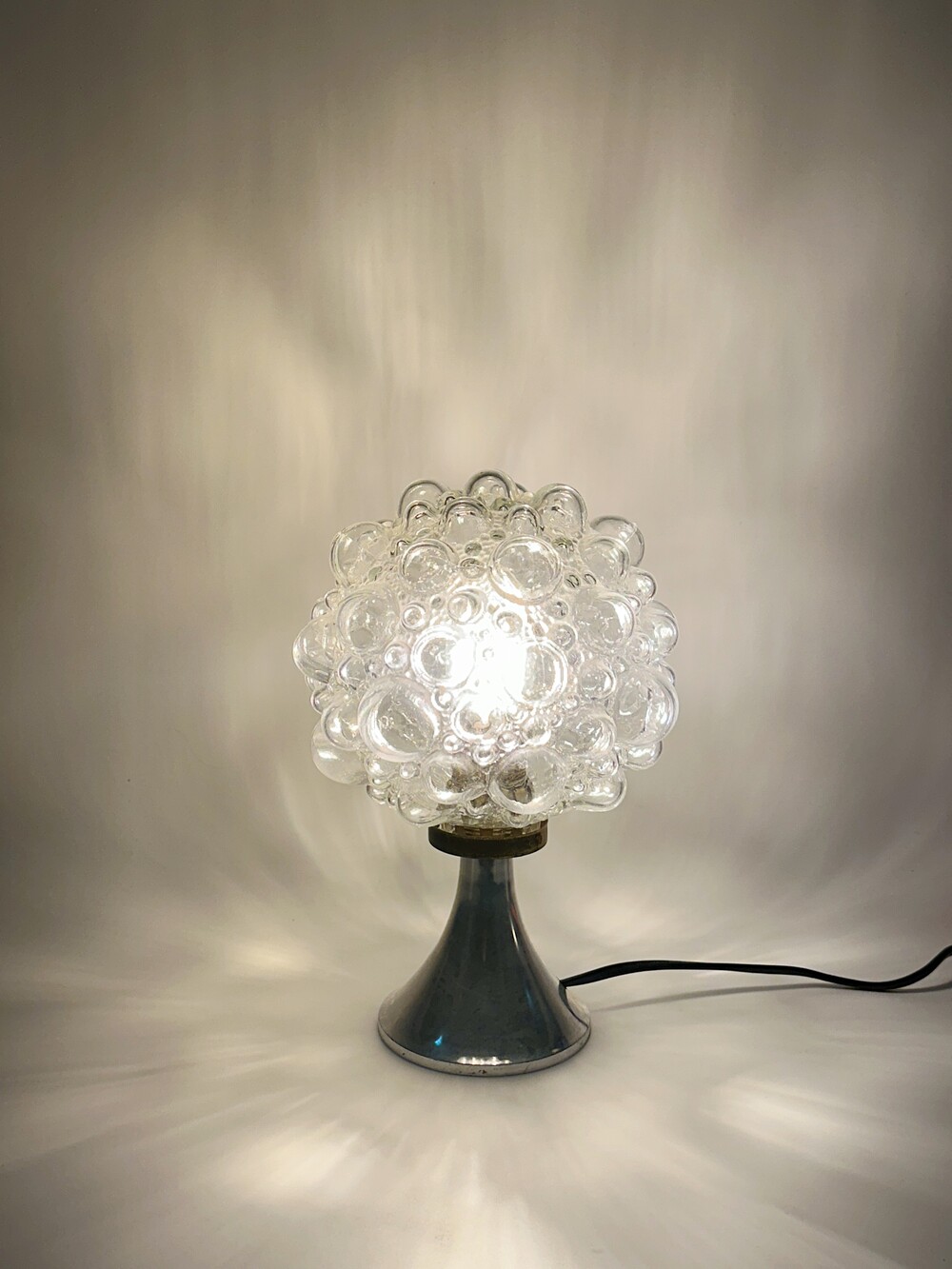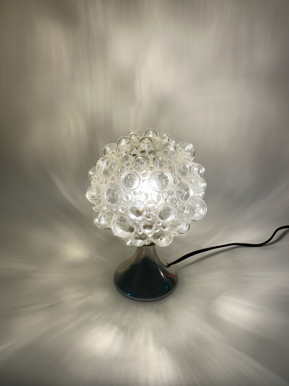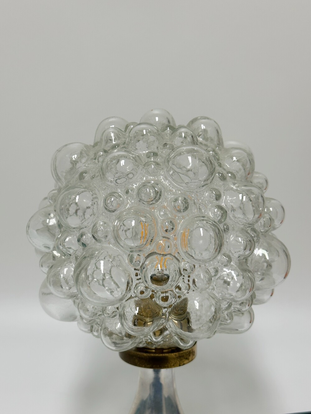 80's Germany Vintage Bubble Glass Table Lamp Silver