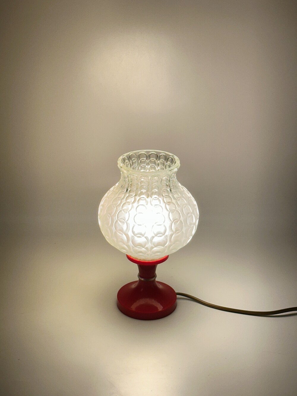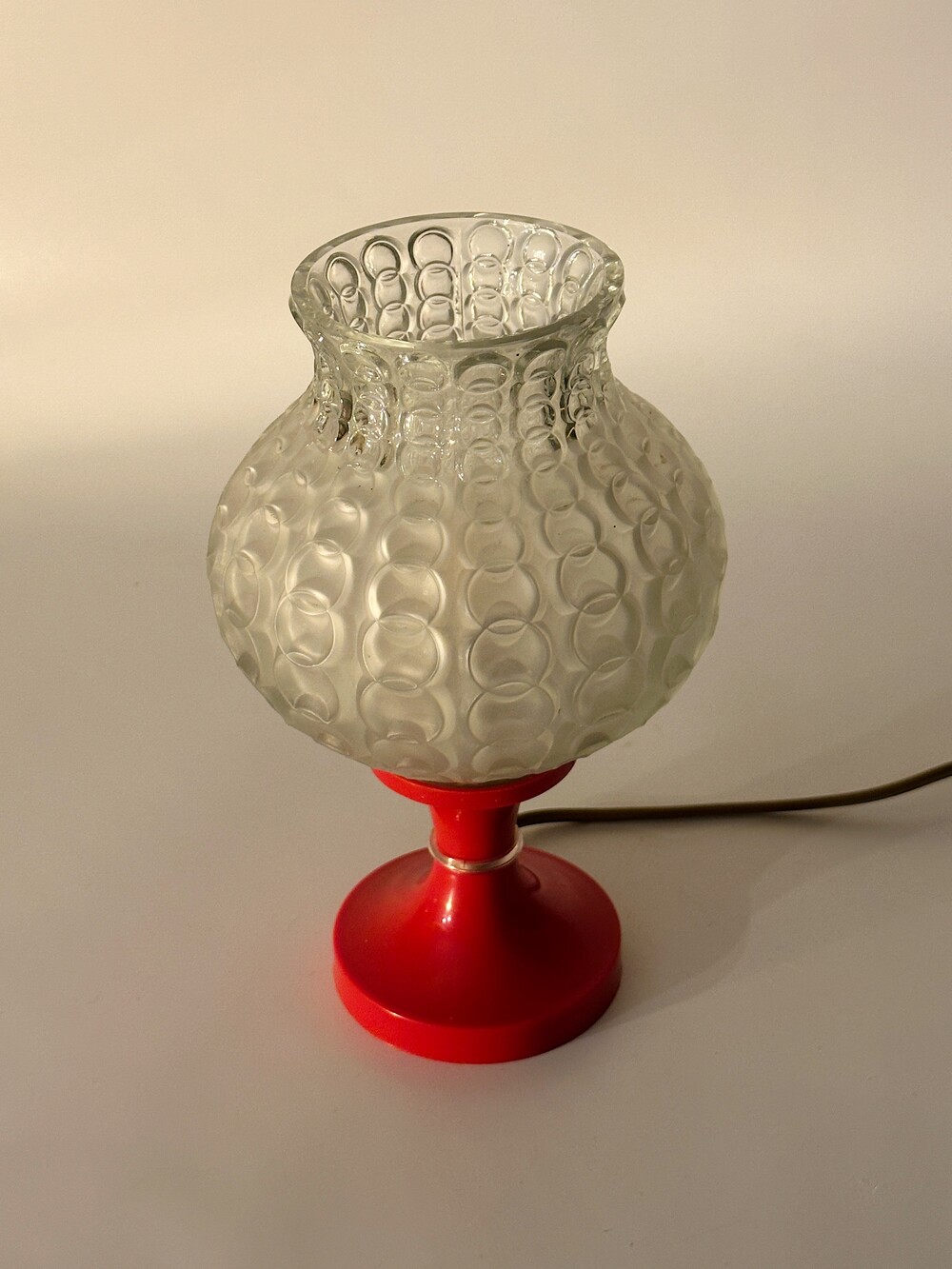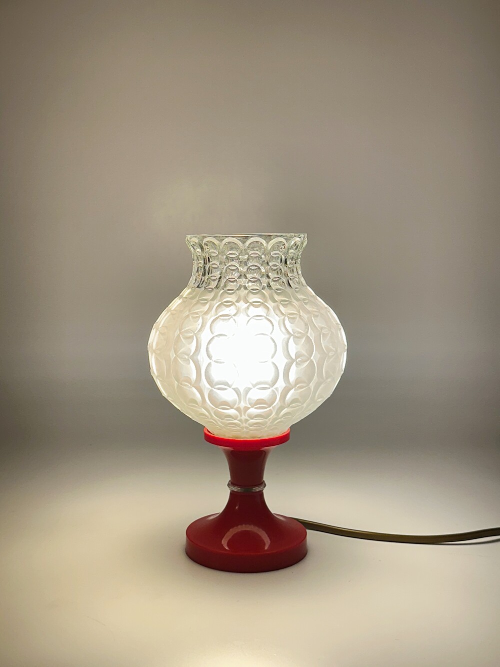 80's Germany Vintage Glass Ball Table Lamp Red