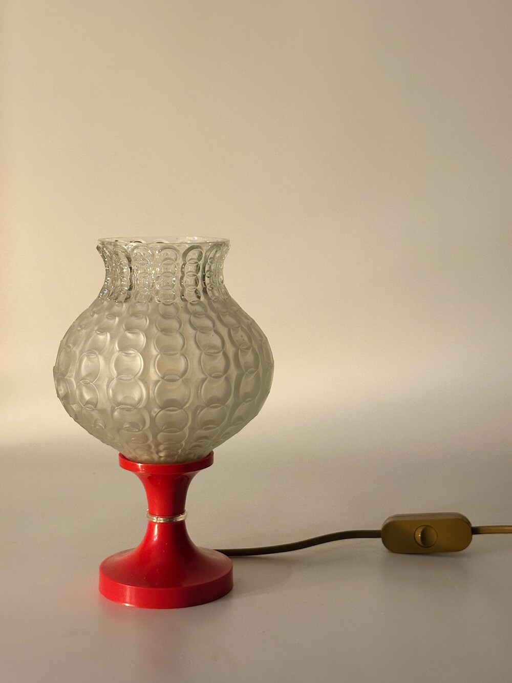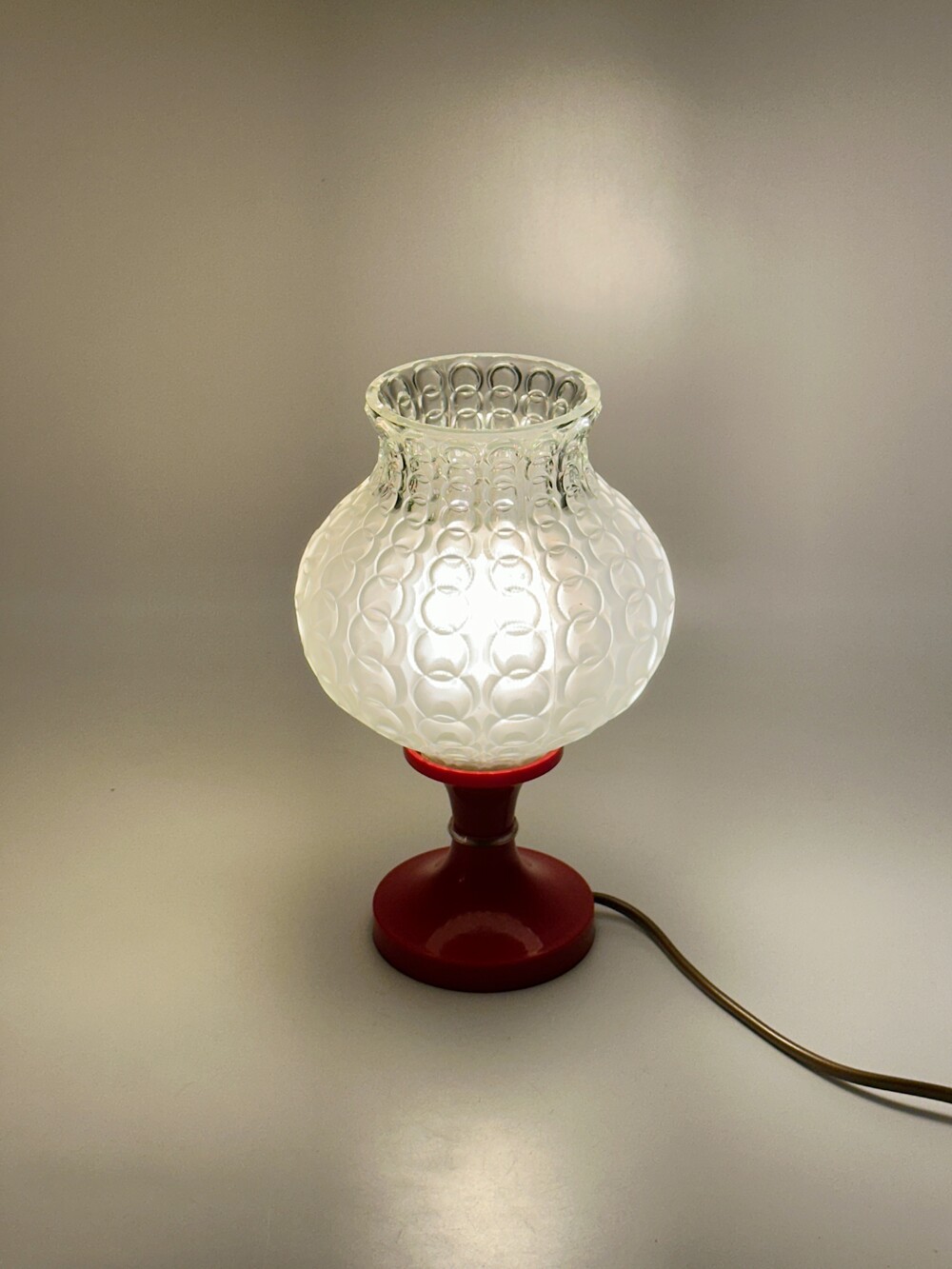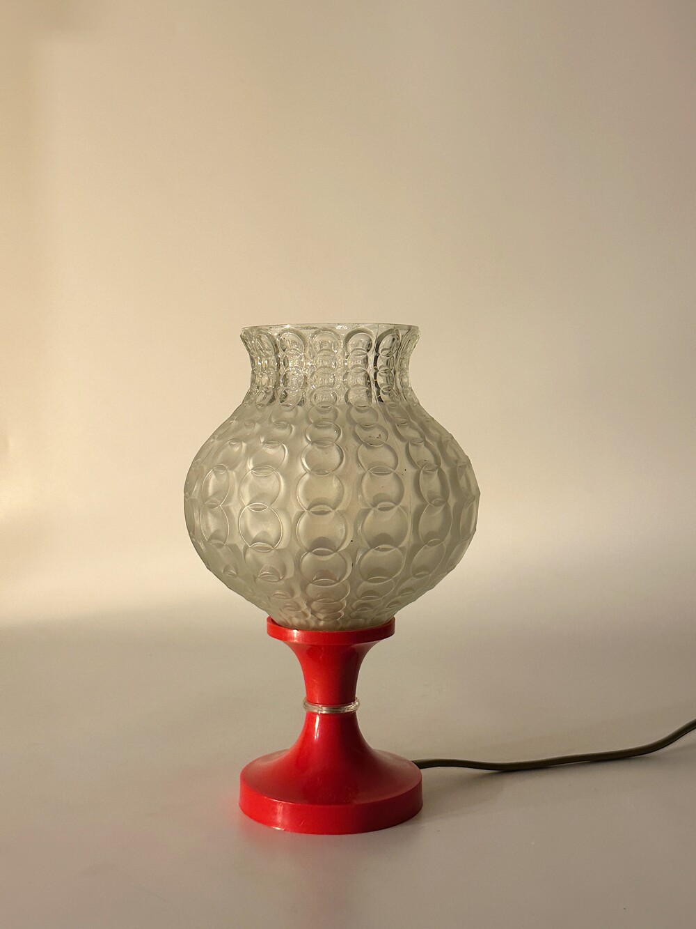 80's Germany Vintage Glass Ball Table Lamp Red