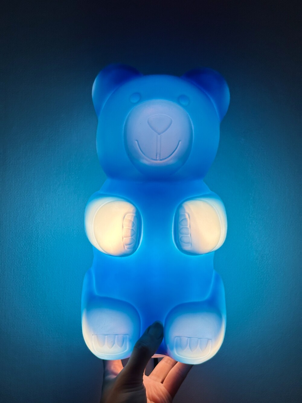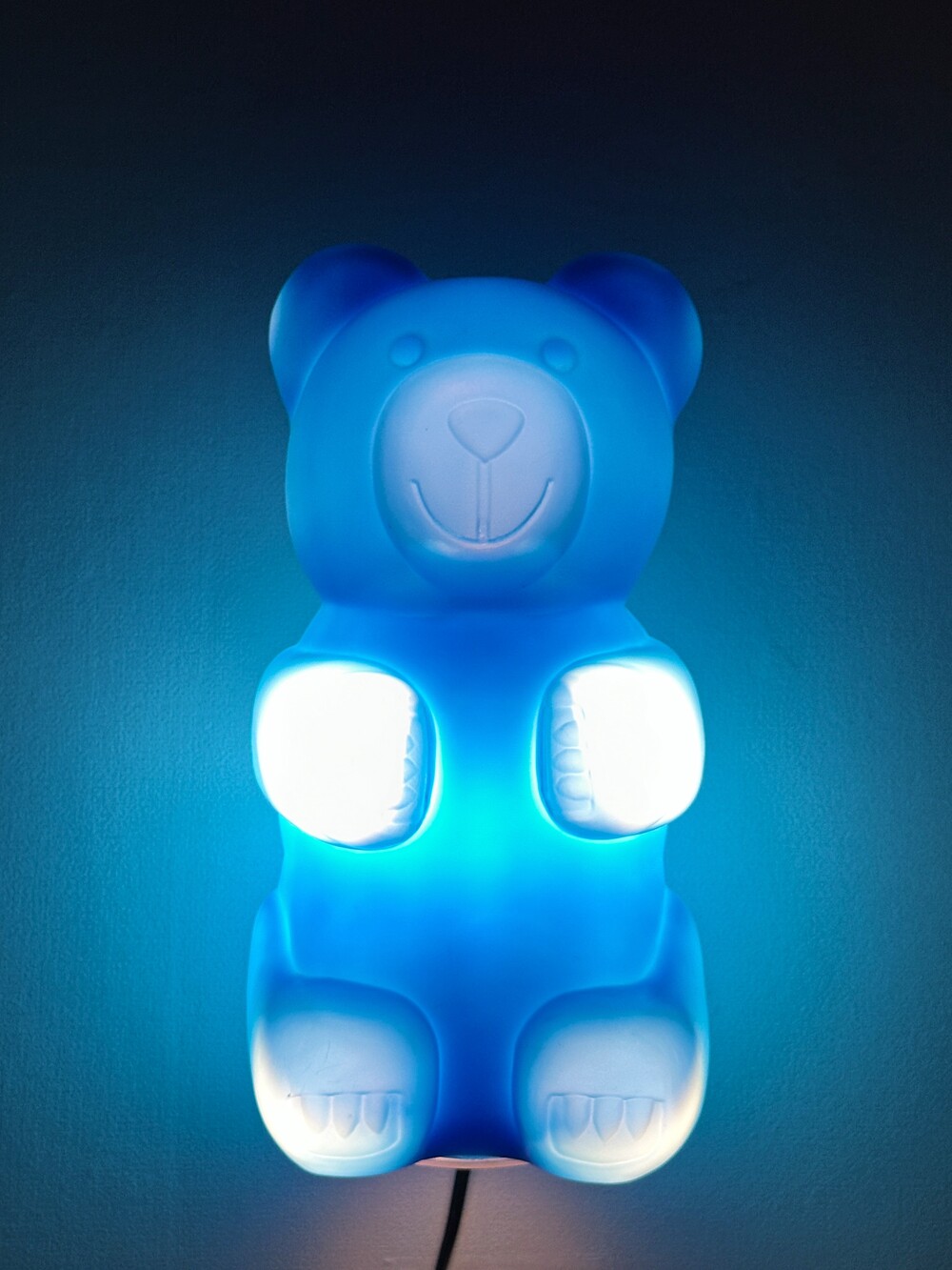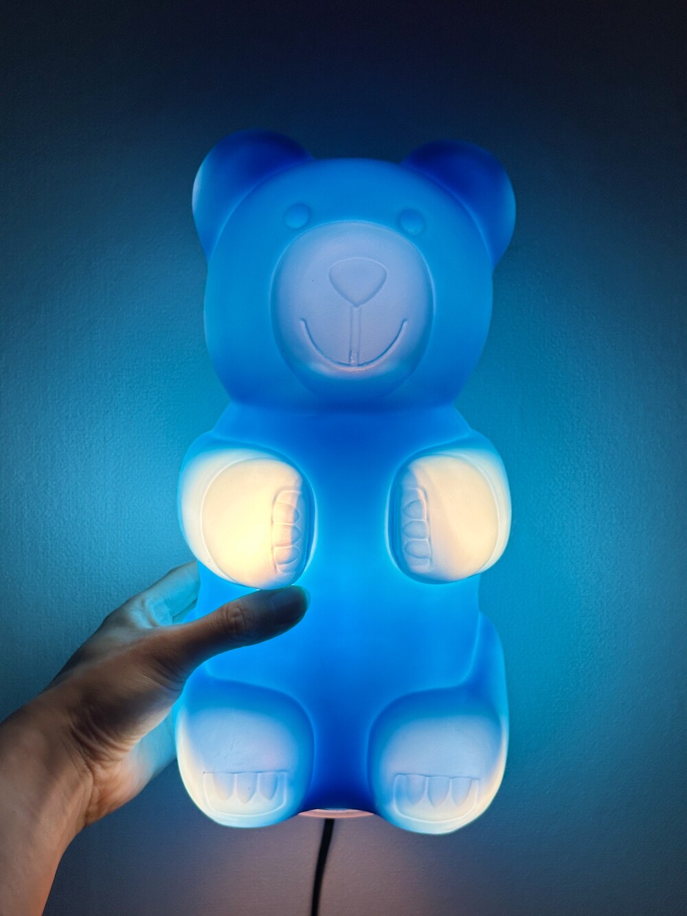 독일에서 넘어온 하리보 조명, 즉 곰돌이 조명이에요. 곰돌이 조명은 해치지 않고 얌전하게 가만히 잘 있답니다. 푸른 곰돌이는 그냥 두어도 오브제로도 예쁘고, 전원을 키는 순간 더 밝은 느낌으로 주변을 파랑파랑한 상쾌한 분위기를 만들어줄거에요. 💙🐻