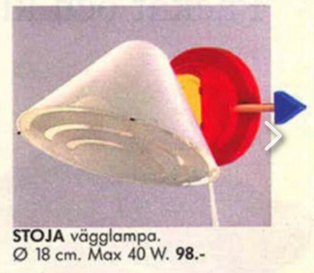 이케아의 붐은 다시 계속 오는 것 같아요. 최근 80년대의 뉘티레르카드 컬렉션 다시 재발매가 되어 큰 인기네요. 80년대 강렬한 컬러감 큰 사랑을 받았던 STOJA 시리즈 중 벽 조명이에요.