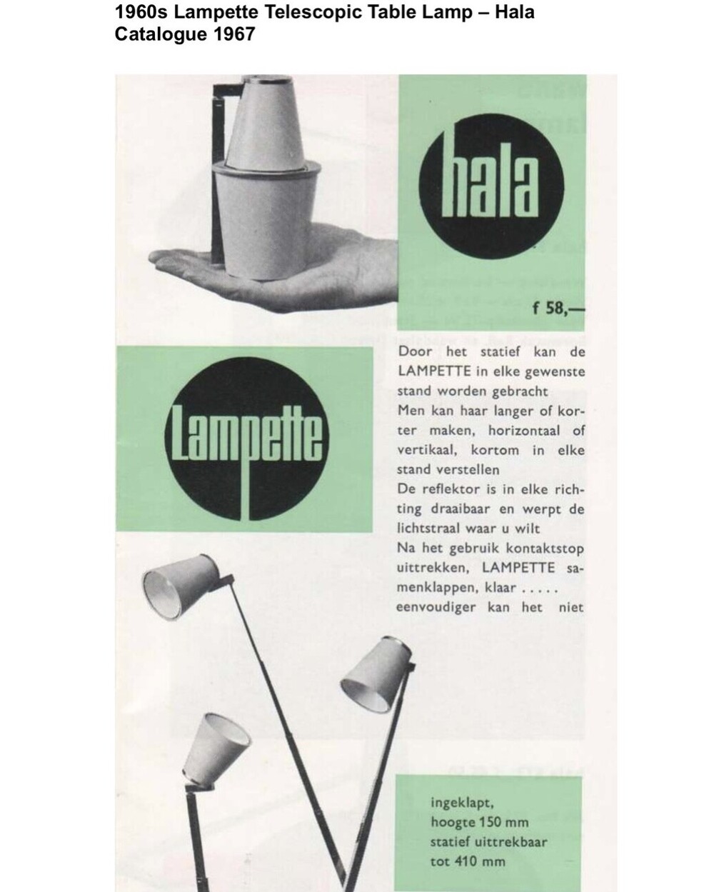 70’s Germany Vintage Lampette Telescopic Folding Desk Lamp Orange