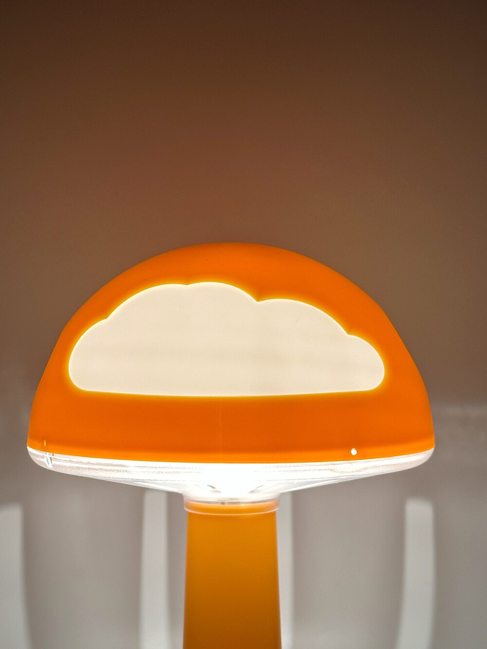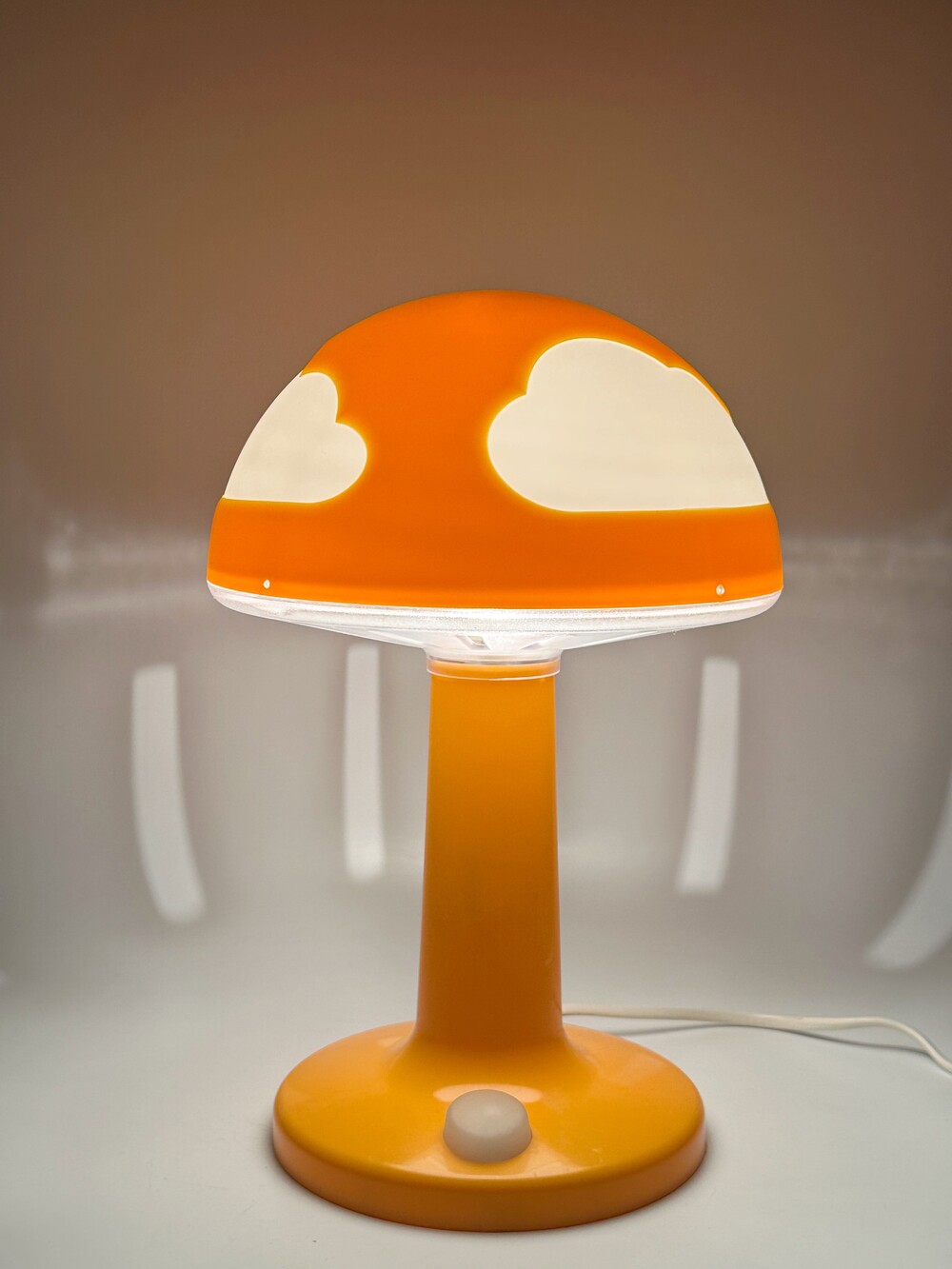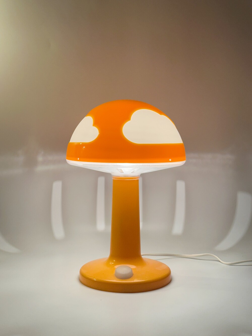 ‘Skojig’은 스웨덴어로 “재미있는, 유쾌한” 이란 뜻으로, 이름 그대로 구름이 떠 있는 하늘을 형상화한 귀여운 버섯 모양의 조명입니다. 반구 형태의 오렌지 갓 위에 새하얀 구름이 떠 있고, 불을 켜면 그 구름 사이로 따뜻한 빛이 퍼지며 벽면에 구름 그림자가 번지듯 퍼져요. 하늘을 보기 어려울때 조금 더 가깝게 집에서도 하늘을 즐겨보면 어떨까요? ☁️🧡