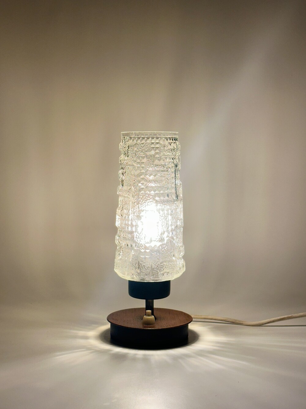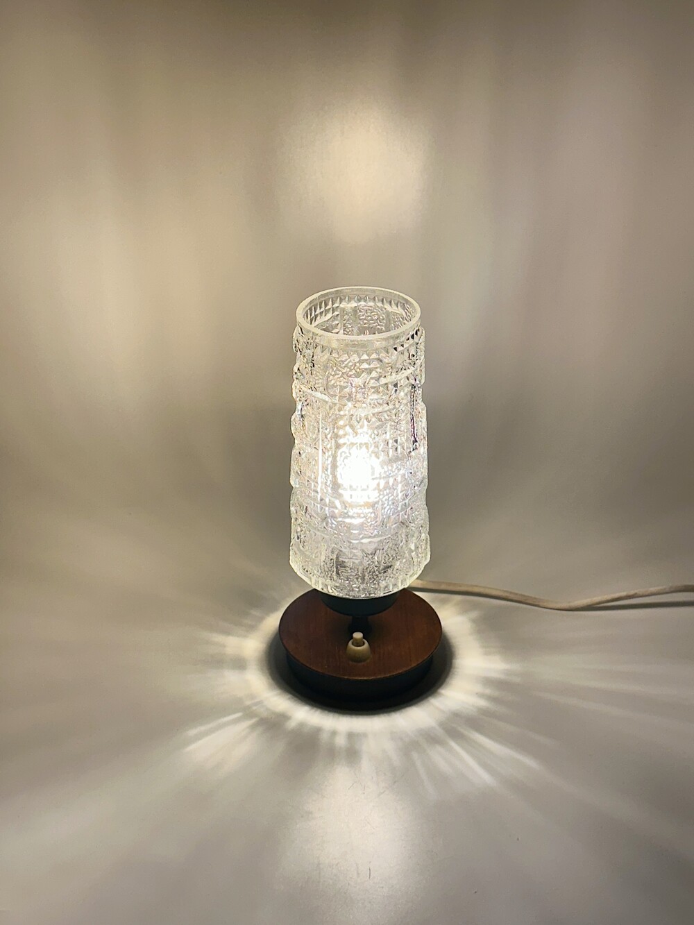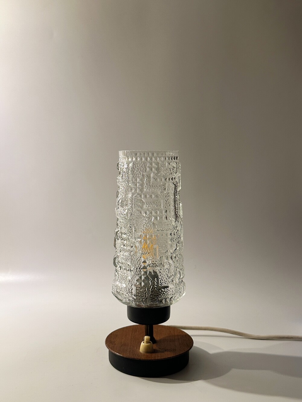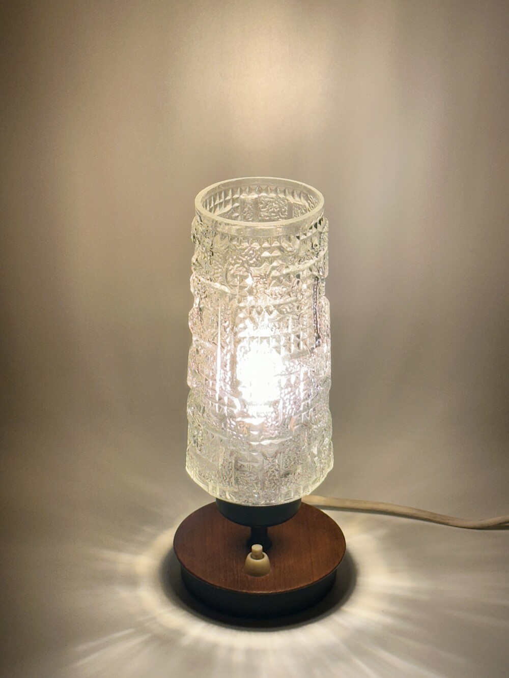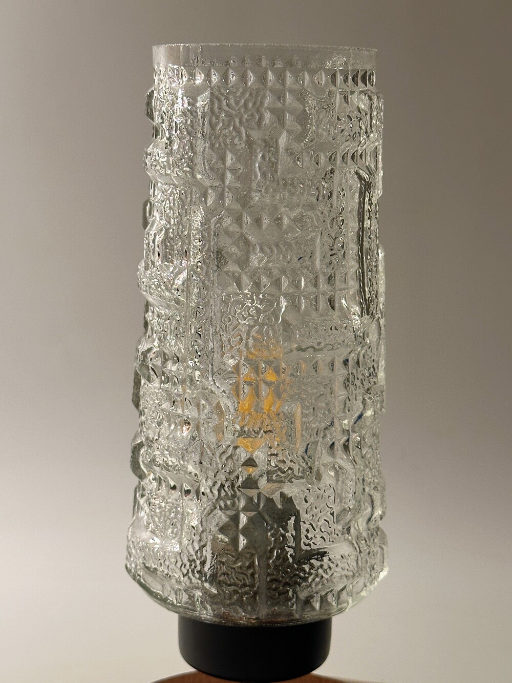 유리 표면에는 얼음이 녹아내린 듯한 기하학적 패턴이 새겨져 있어, 불을 켰을 때 주변으로 빛의 파편을 흩뿌립니다. 베이스는 우드처럼 보이지만 안정감있는 메탈 소재로 되어있어요. 자연스러운 따스함과 단정한 모던함이 동시에 느껴집니다. 마지막으로 작고 귀여운 아이보리 스위치를 똑딱 눌러보는 즐거움이 있답니다. ✨