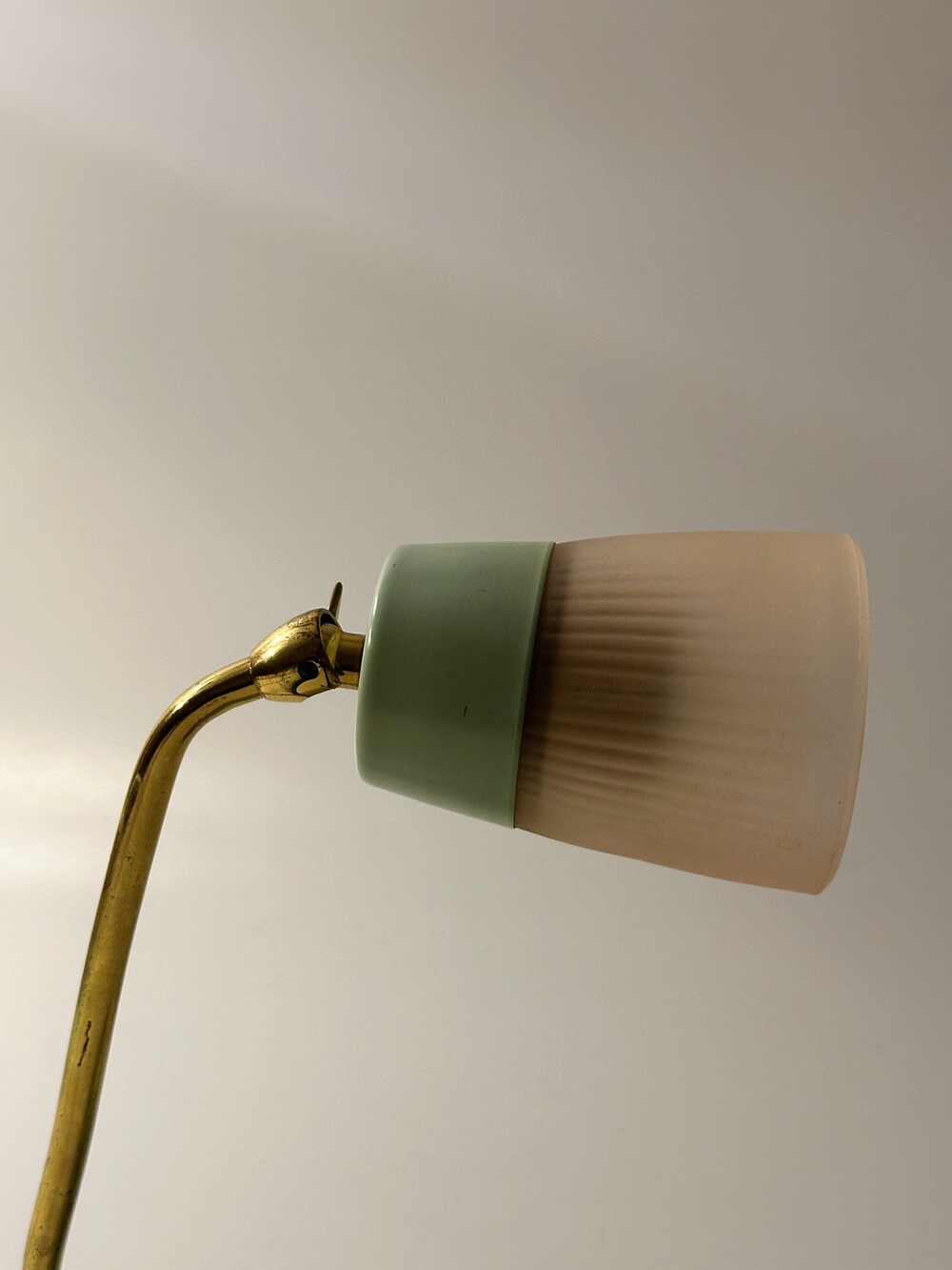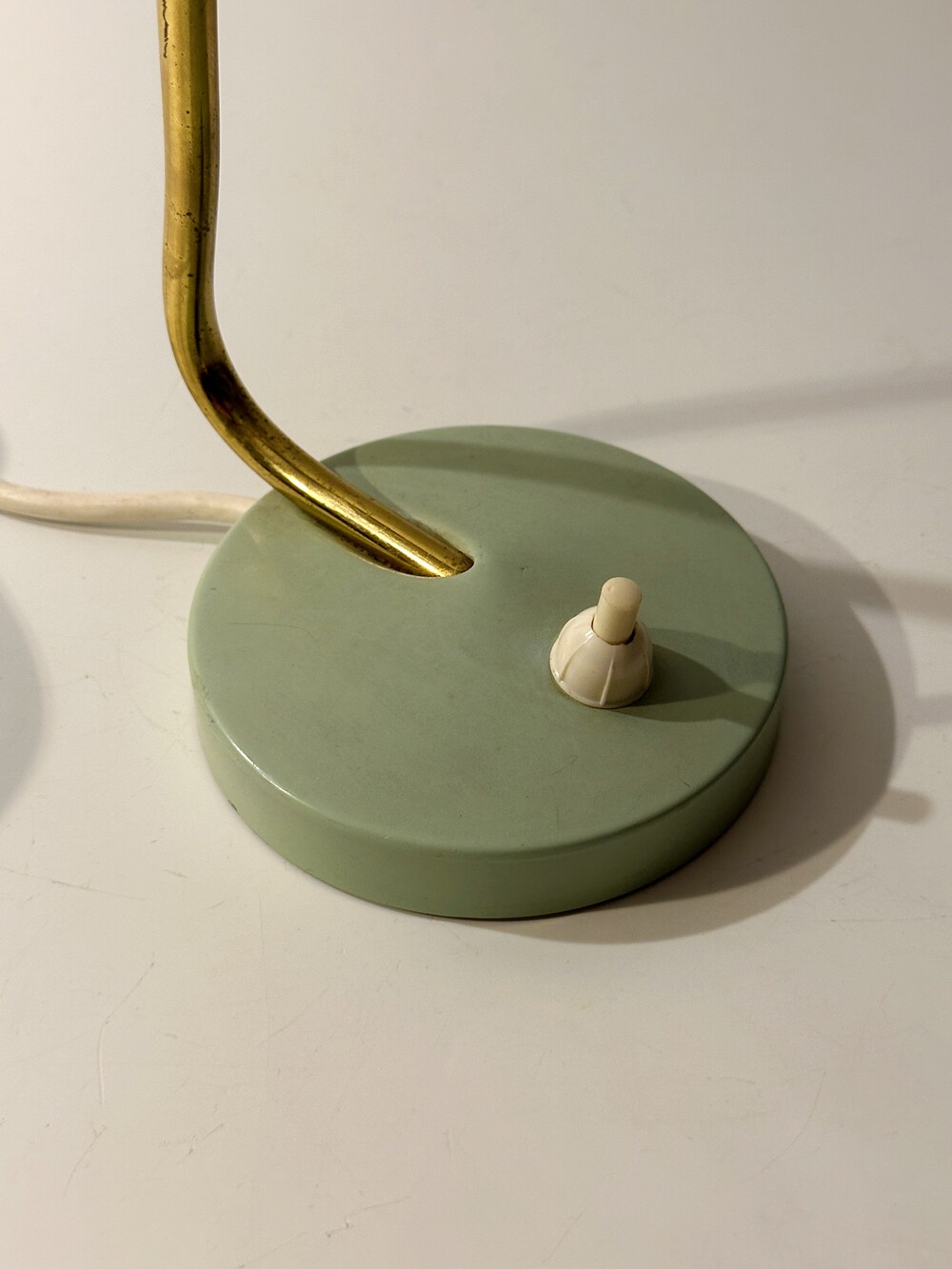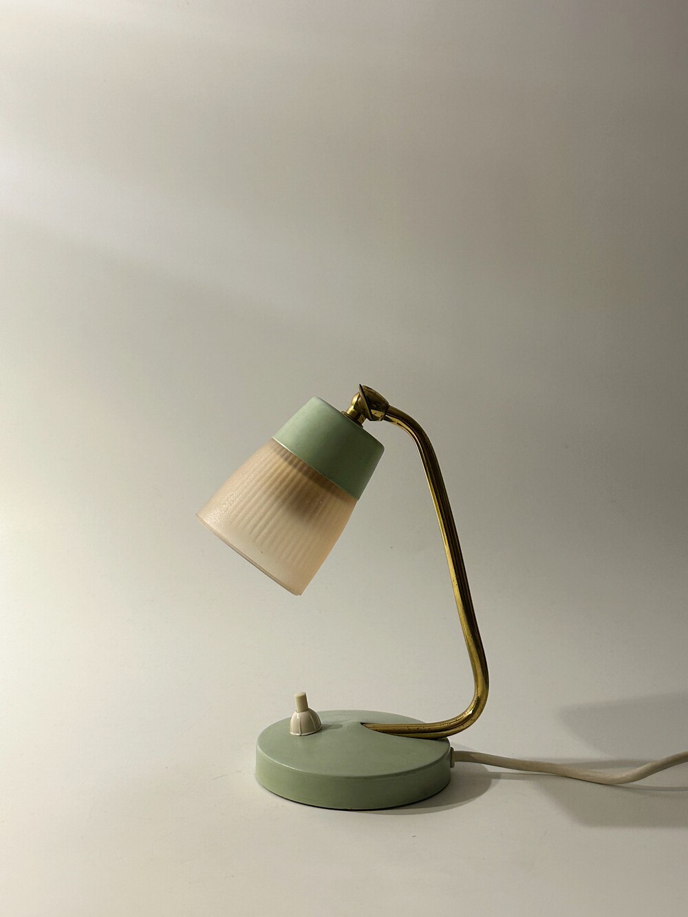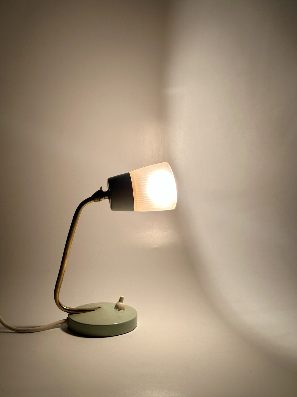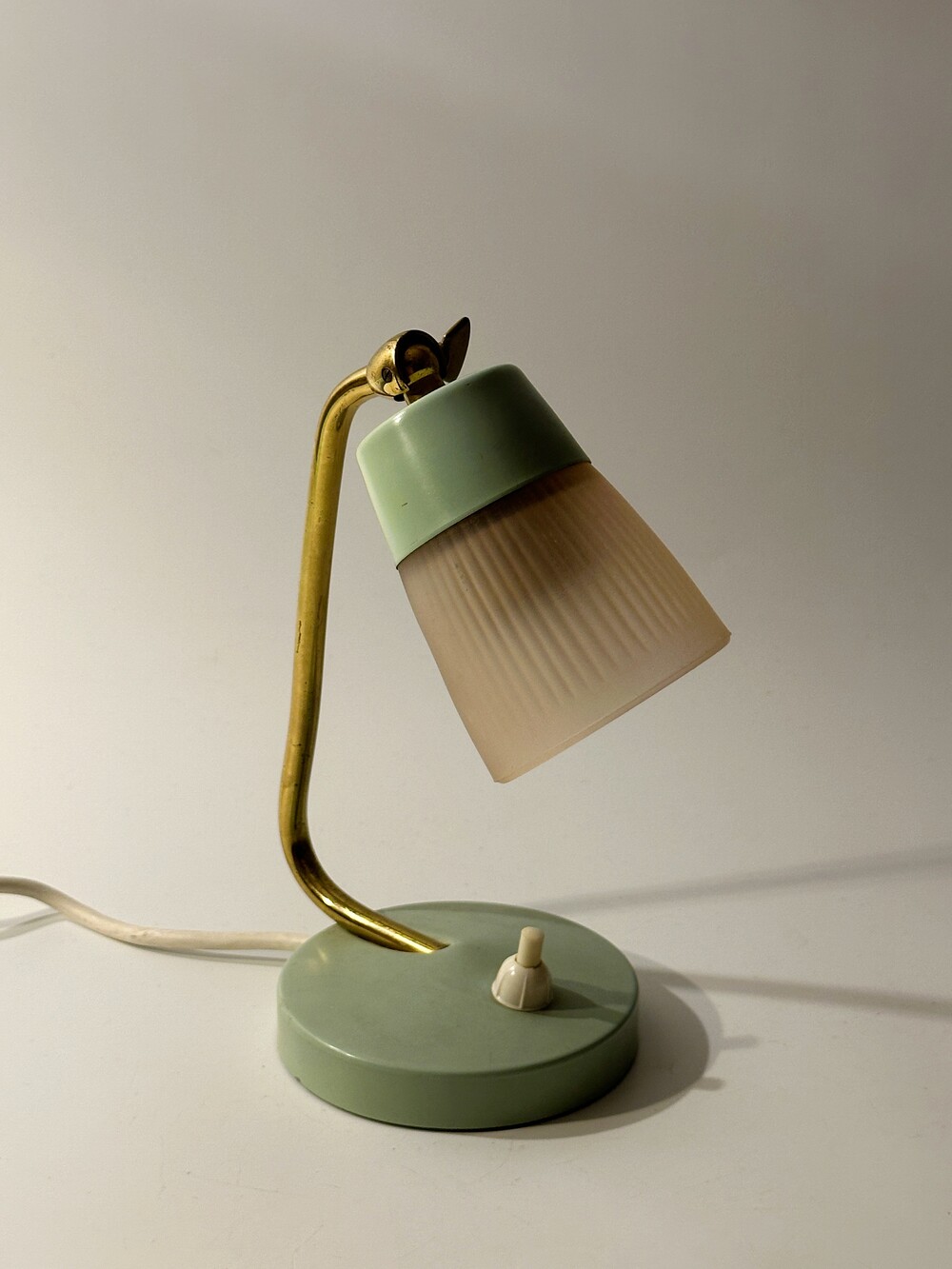 레트로한 민트 컬러의 색감이 인상적인 70년대 독일 빈티지 베드사이드 램프에요. 작고 둥근 불투명 글래스을 통해 은은한 빛을 전해주고, 부드럽게 꺽인 브라스의 넥 부분은 고급스럽고 안정감을 주네요. 작은 섬세한 부분으로, 헤드부분 컨트롤 할 수 있습니다. 과한 빛이 아닌 차분하고 편안한 조도를 느낄 수 있어요. 그래서 아마 옛날 사람들도 침대 옆 협탁, 즉 베드 사이드용으로 사용했을 거에요. ✨🛌