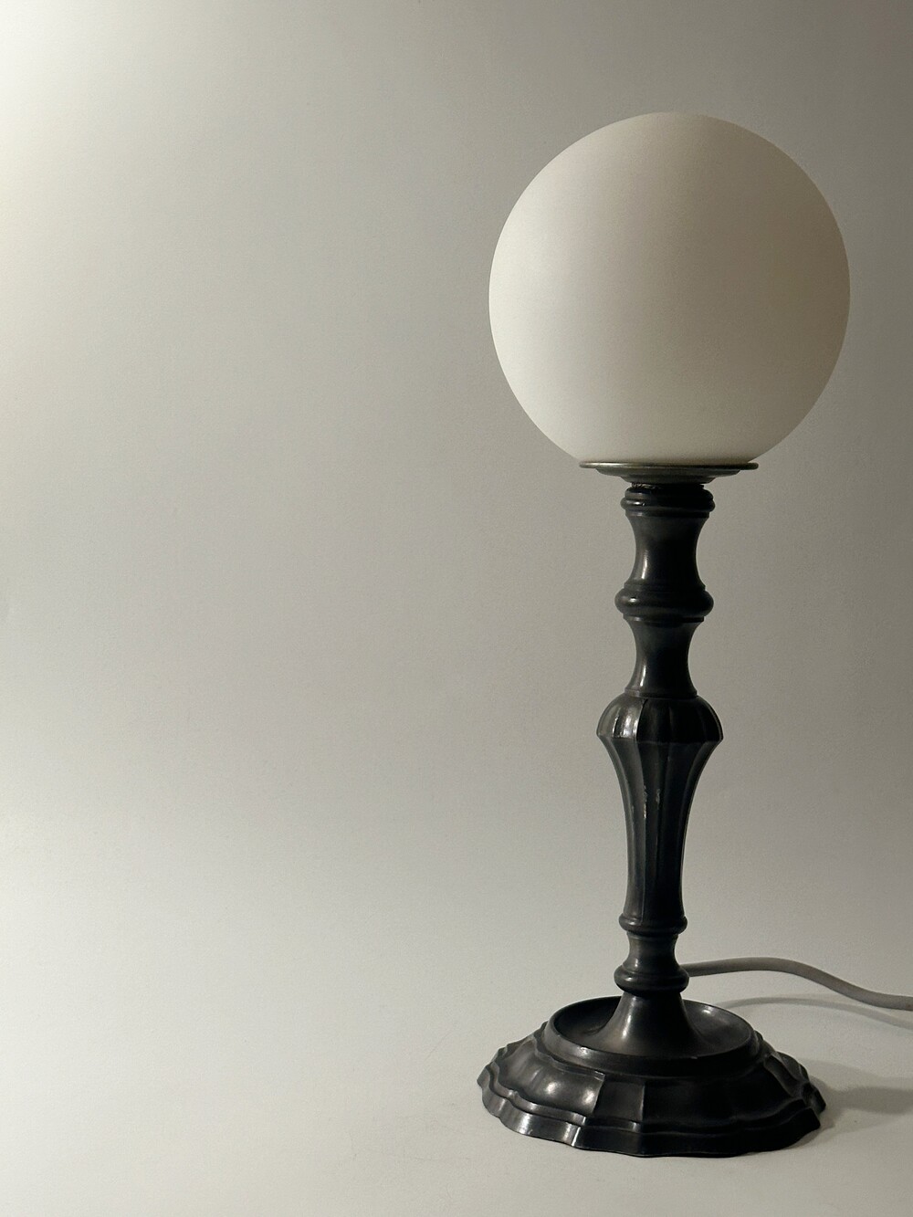 과거 전기 발명 전에는 촛불로 불을 밝혔죠. 그 시대의 캔들 스탠드 형태를 재해석한 빈티지 캔들 스탠드 조명이에요. 상단의 글로브는 매끈하고 불투명으로 되어있어 전원을 켜도 직접적인 빛이 아닌 은은한 간접 빛을 통해 공간을 고요하게 밝혀준답니다. 베이스는 블랙 컬러의 메탈로 안정적이고 차분함을 느낄 수 있을 거예요. 받침 및 몰딩 디테일까지 섬세함이 보여 즐거워요! 바닥에 무심하게 두어도 좋고 베드 사이드 용으로 사용하셔도 좋고 작업용 테이블에 두어도 좋을 것 같아요. 사실 어느 공간에 두어도... ✨✨