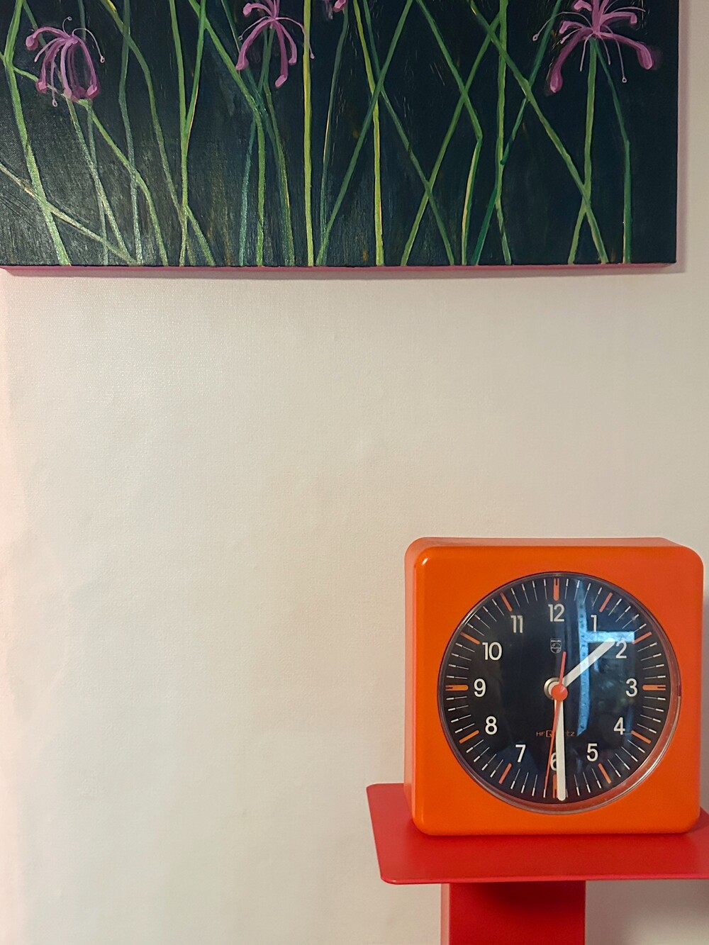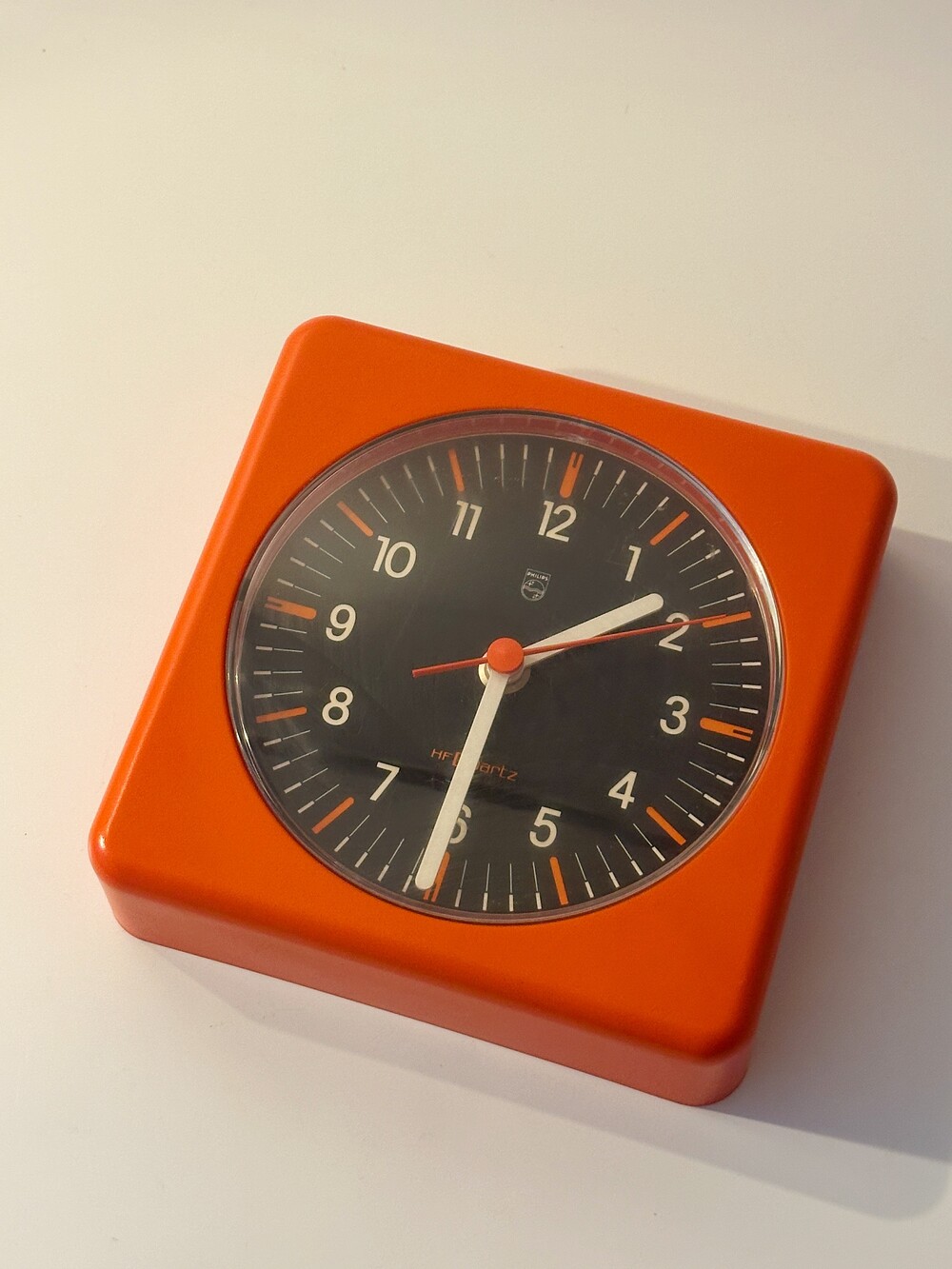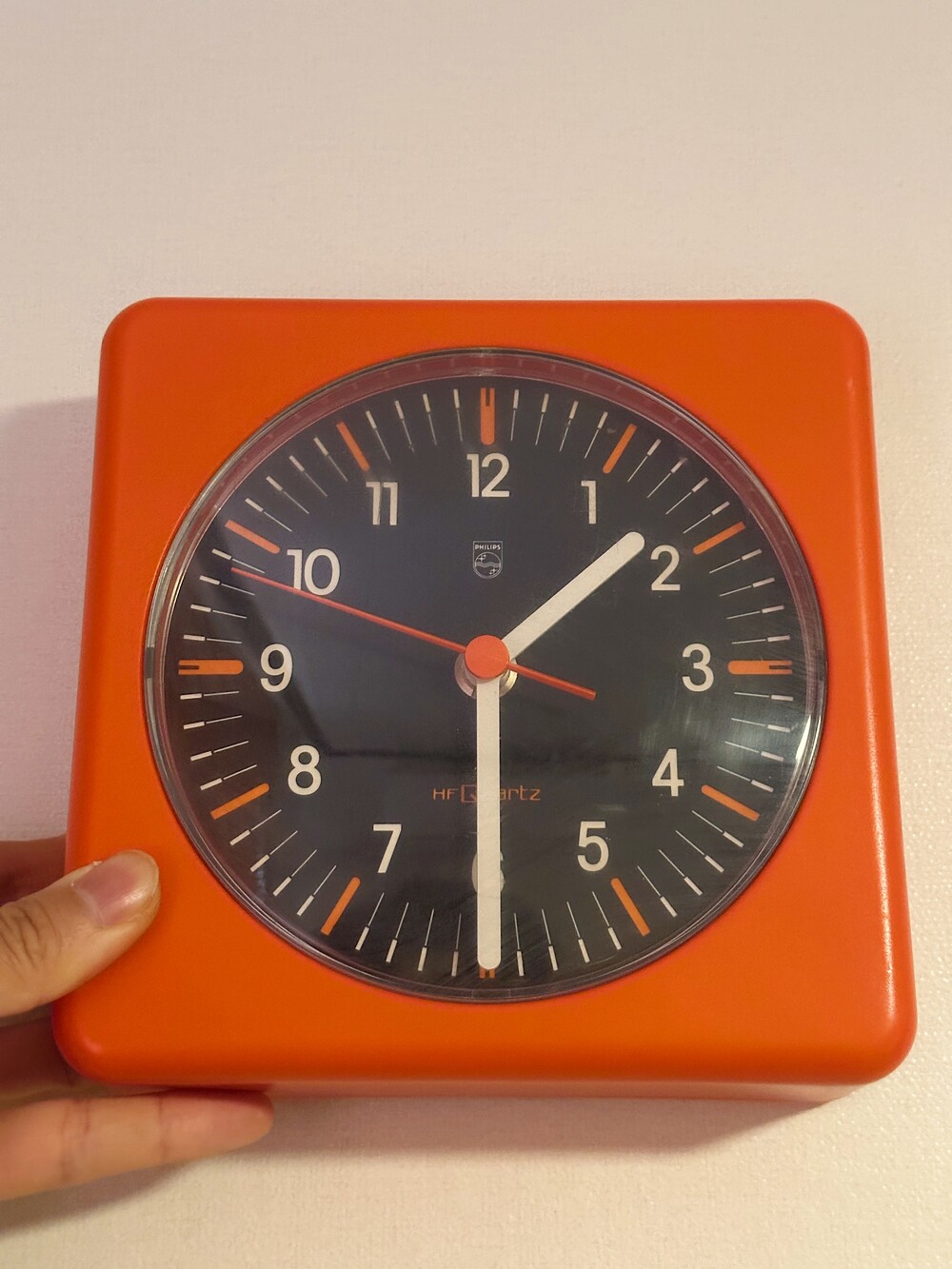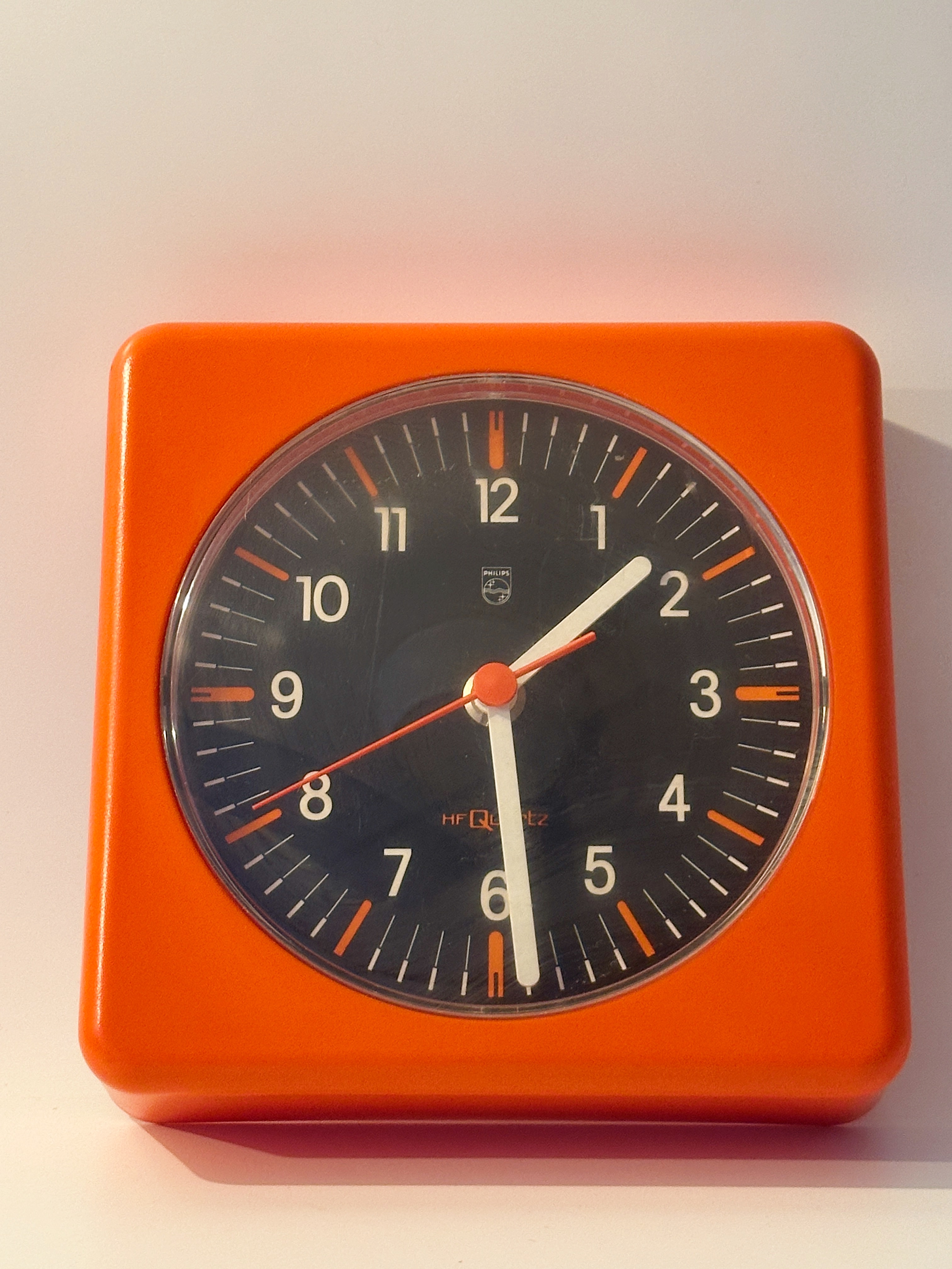 70년대 팝하고 강렬한 컬러가 인상적인 미드센츄리 스타일의 오렌지 컬러가 인상적이며, 당시 필립스가 즐겨 사용하던 열가소성 플라스틱 특유의 매트한 질감이 그대로 살아 있답니다. 전면의 블랙 다이얼에, 레드 포인트의 초침, 그리고 화이트 숫자 배열은 멀리서도 한 눈에 볼 수 있는 고가독성의 특징이 있습니다. 50여년이 지났지만 전반적인 컨디션은 데미지 없이 좋으며, 건강하게 정상 작동 중입니다. 오래오래 함께 시간을 보내보세요 🕖
