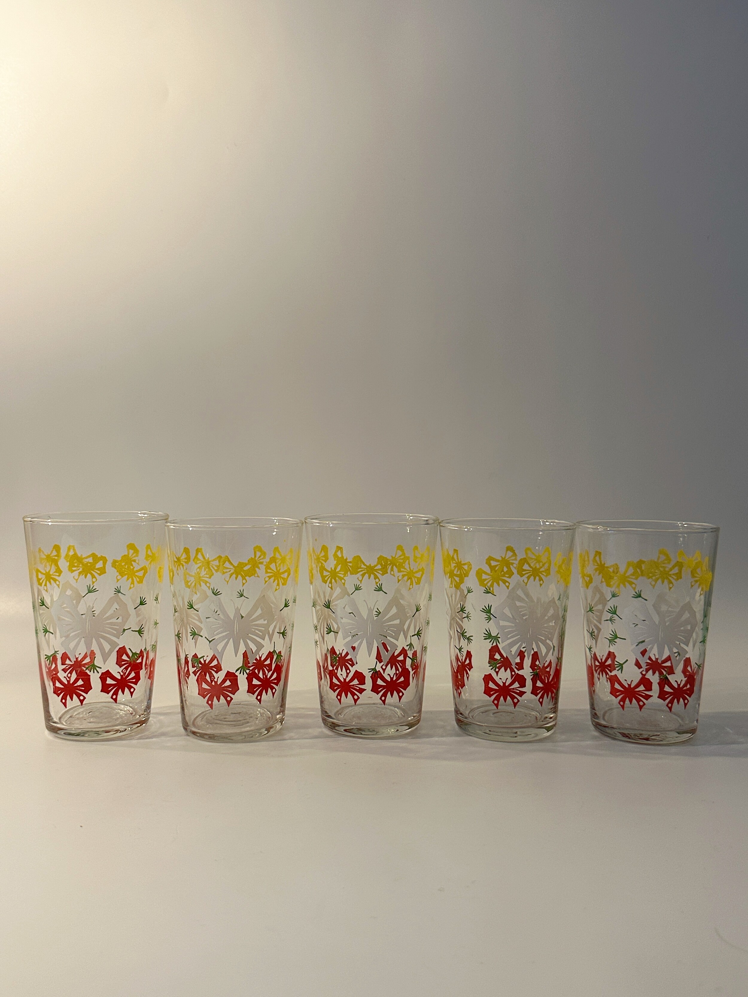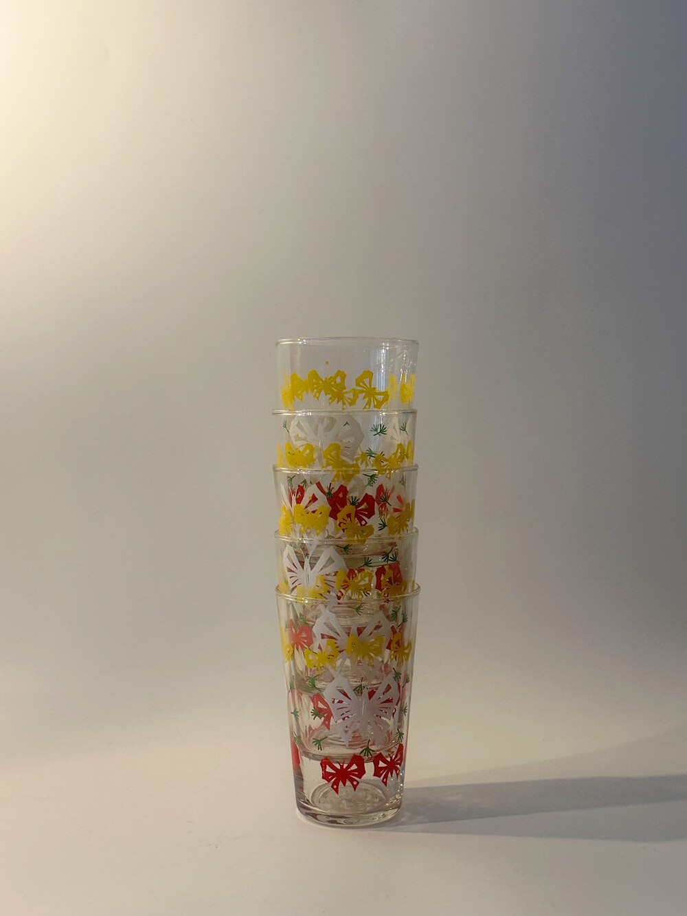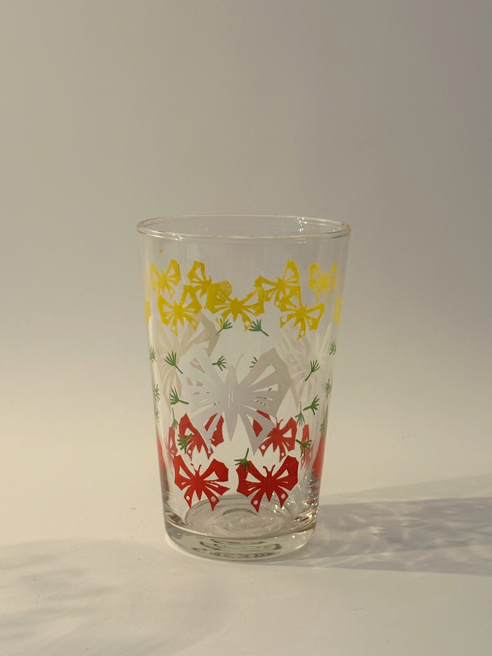 투명한 글래스 위에 화려하게 피어난 나비 패턴이 인상적이에요. 옐로우 레드 화이트의 간결한 색조합으로 화사한 느낌이에요! 물론 어떤 음료를 따라서 마신다면 경쾌한 맛을 즐길 수 있지 않을까요? ❤️💛🤍
