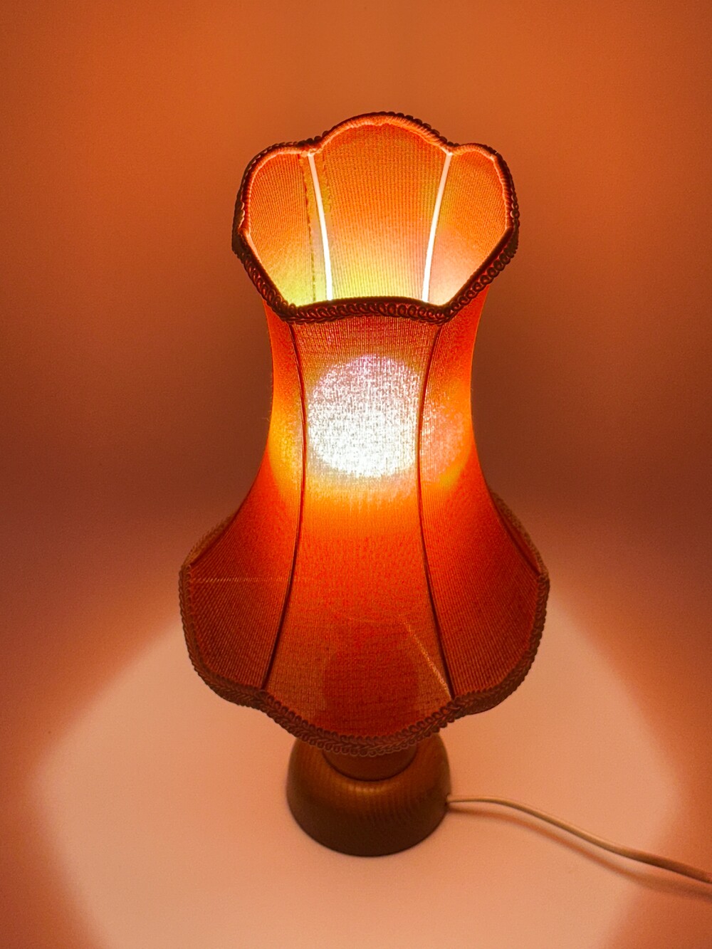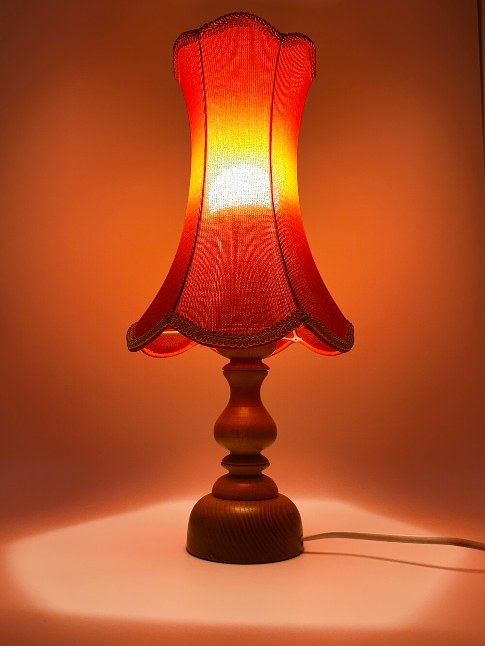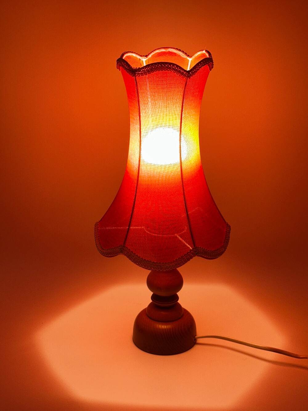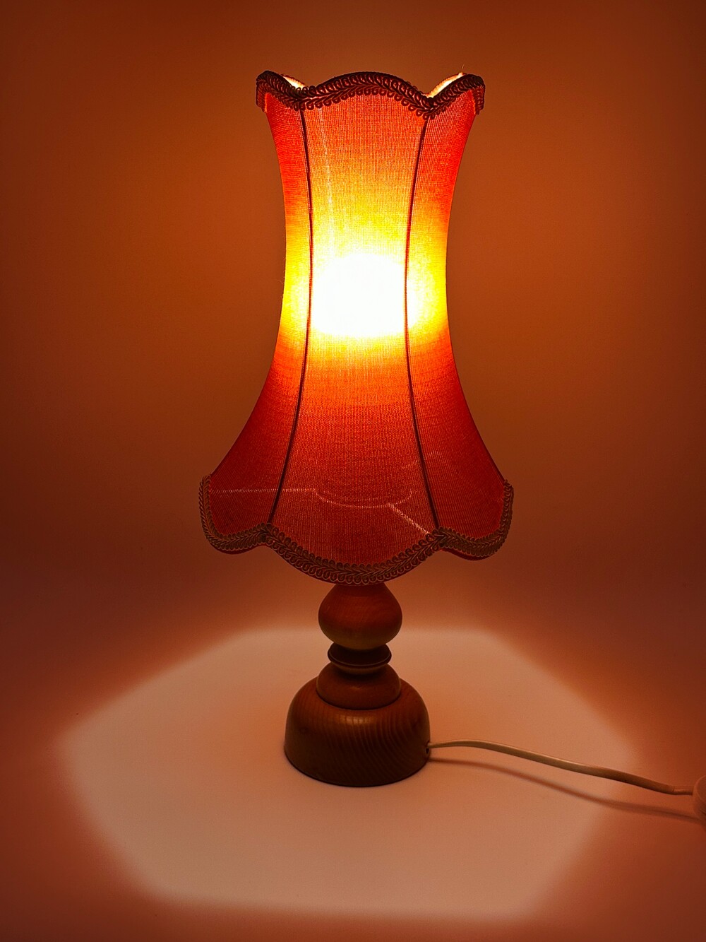 저는 언제부턴가 이런 패브릭 소재의 빈티지 조명에 대해서도 매력을 빠지게 되었어요. 빛이 단순히 켜지는 게 아니라 천을 통해서 통과하기 때문에 직접적인 빛의 감도가 아닌 자연스럽게 생기는 그라데이션 효과랄까요. 이런 패브릭 조명들은 보통 70-80년대까지 유럽 가정에서 캐주얼하게 사용했다고 하네요. 해당 빈티지 조명은 코르셋 드레스처럼 위아래로 부드럽게 잘록해지고 퍼지는 하단의 패브릭이 인상적이에요. 컬러감도 다소 안정감 있는 과하지 않은 레드 컬러라 큰 부담이 없으며, 전원을 키는 순간 더 포근한 감각을 느끼실 수 있을 거예요. 그 당시 무드를 즐기고 싶다면 베드사이드용으로 추천드려요! ❤ ✨
