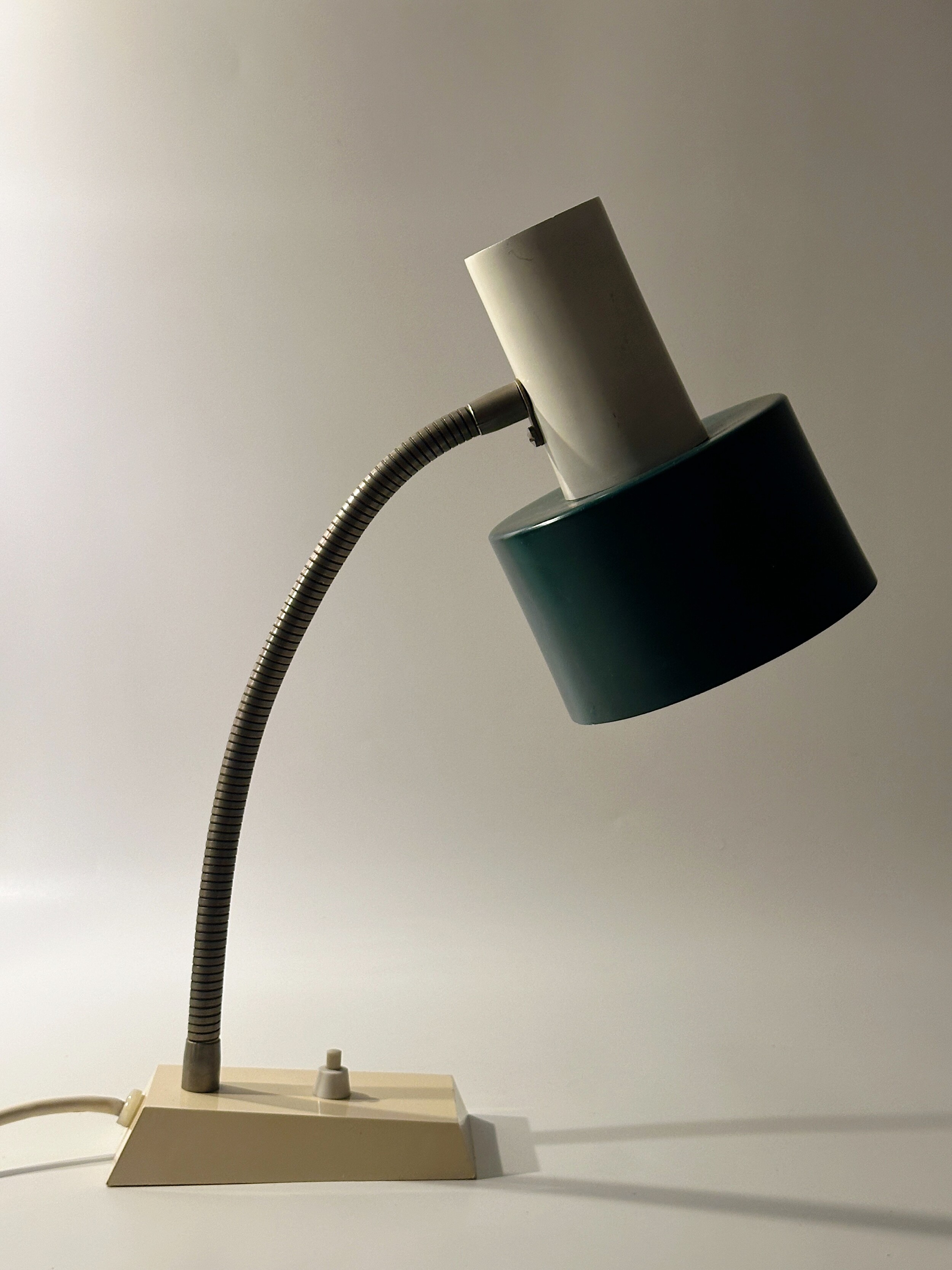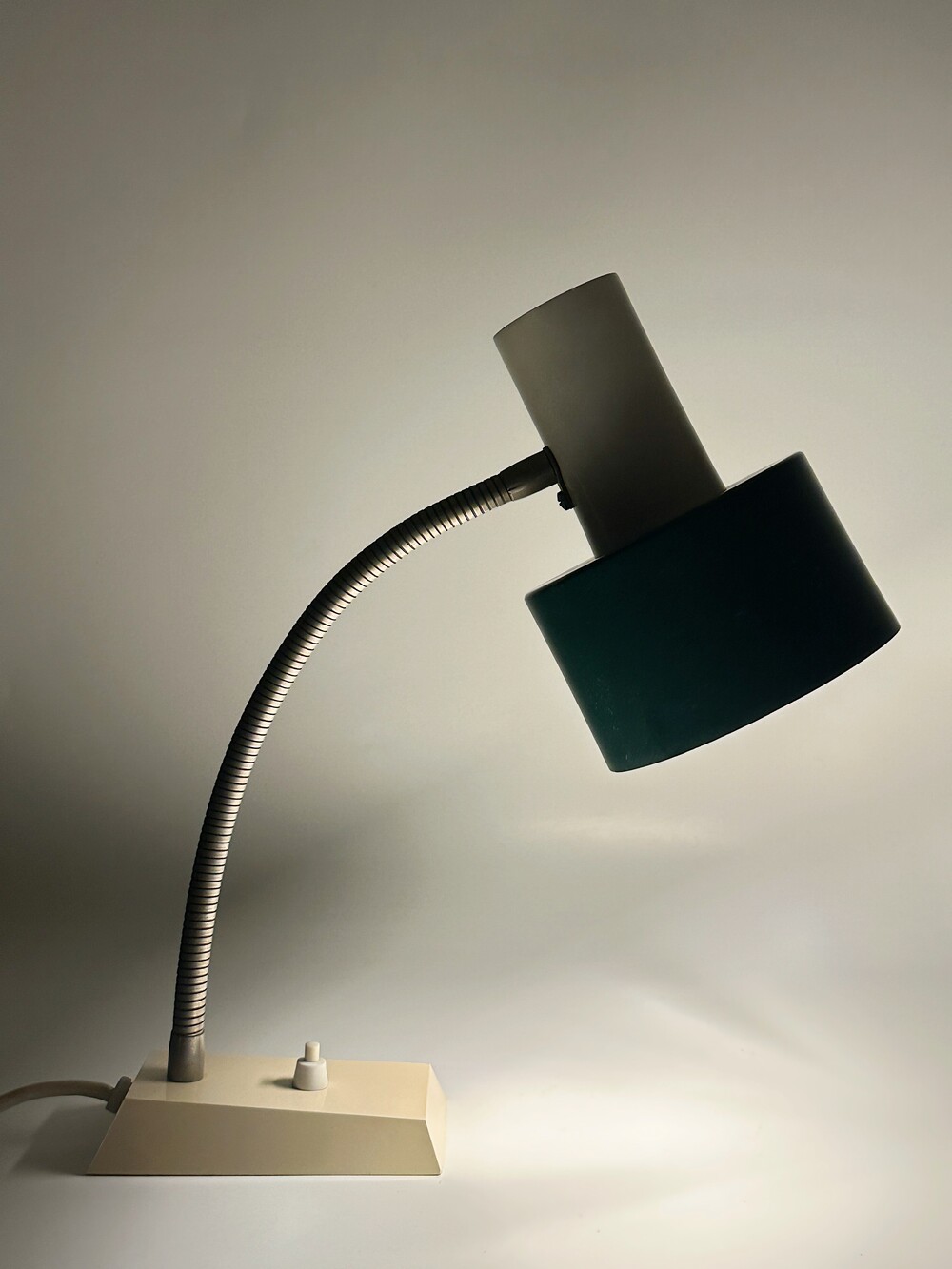 70's Germany Vintage Gooseneck Table Lamp Dark Green&White