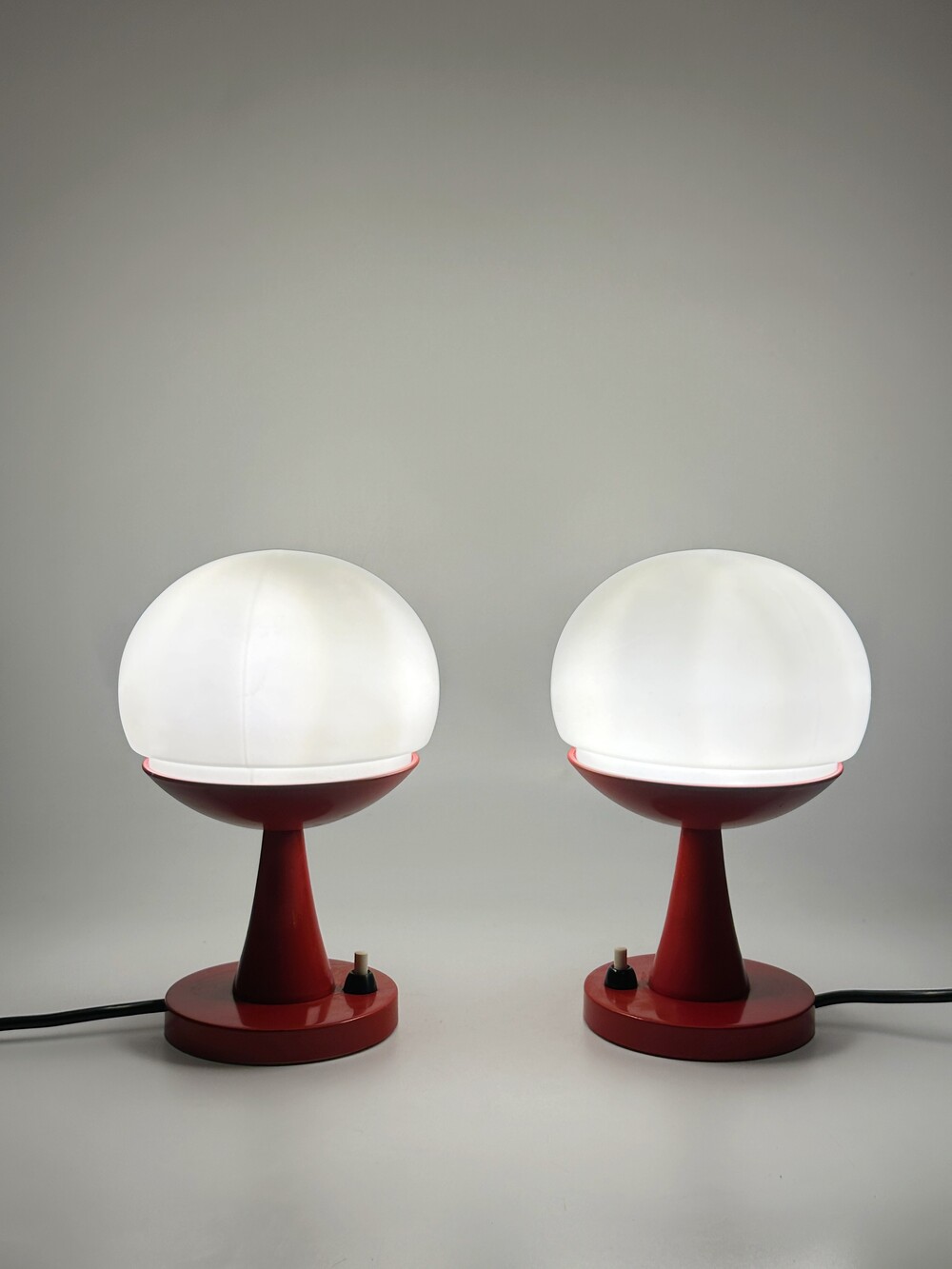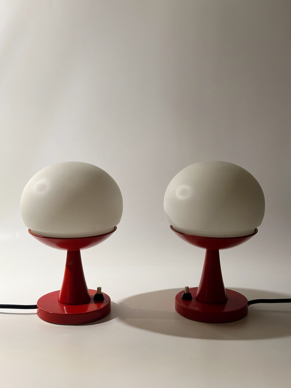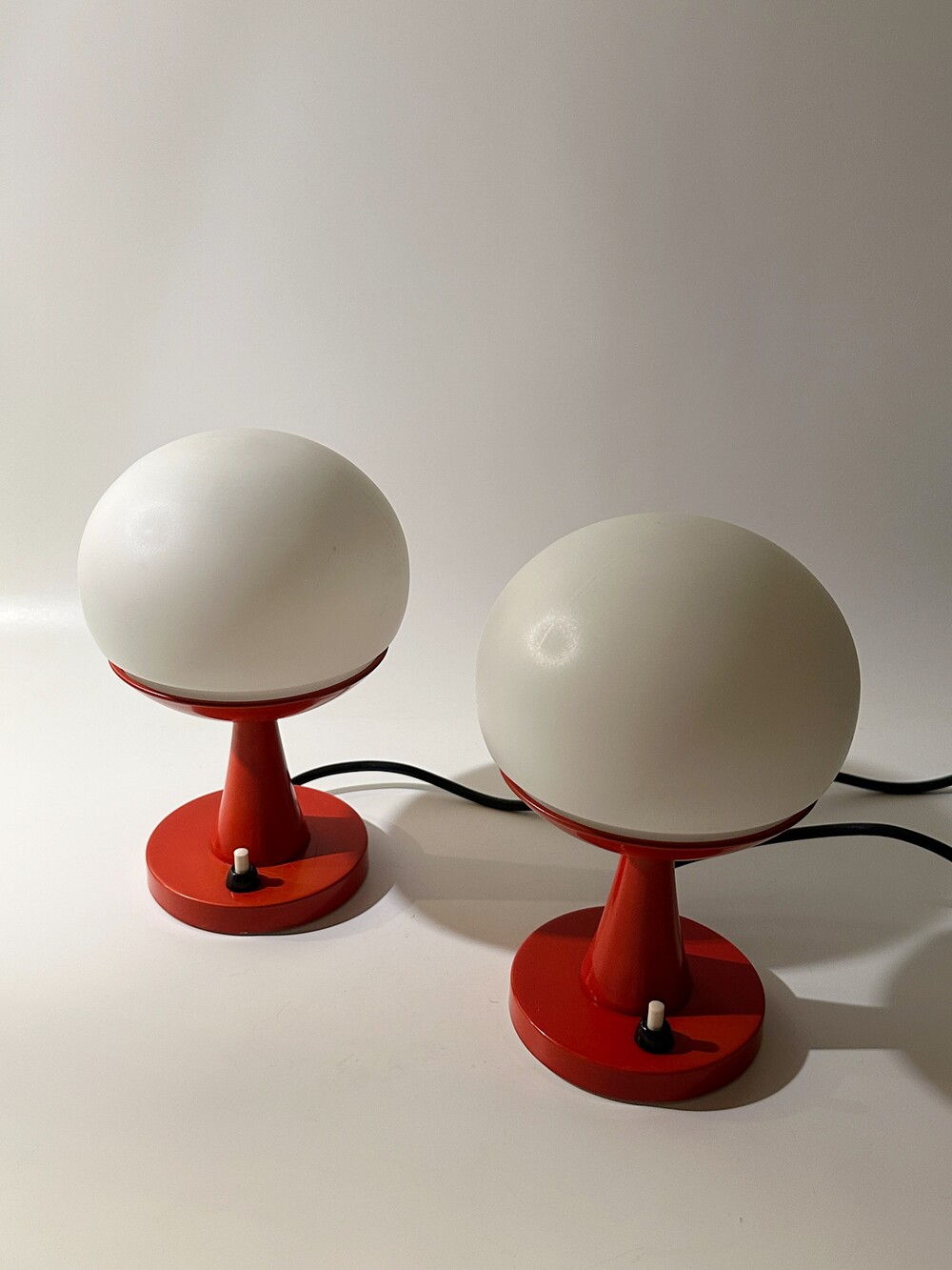 새하얀 글라스 볼과 강렬한 레드 컬러의 스틸로 된 베이스가 인상적인 빈티지 조명이에요. 70년대 우주탐사의 영향으로 우주 시대 디자인을 그대로 옮겨놓은 듯한 스페이스 에이지 형태의 아이코닉한 느낌을 주어요. 주변 공간을 아늑하고 은은하게 퍼지는 따뜻한 무드라 침대 옆 협탁에 수면등으로도 추천드려요. 또한 보기 드물게 동일 모델로 커플로 있기 때문에 사이 좋게 양쪽에 하나씩 커플용으로도 추천! ❤️❤️