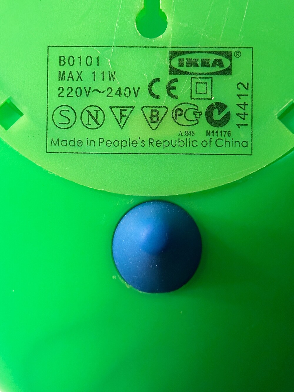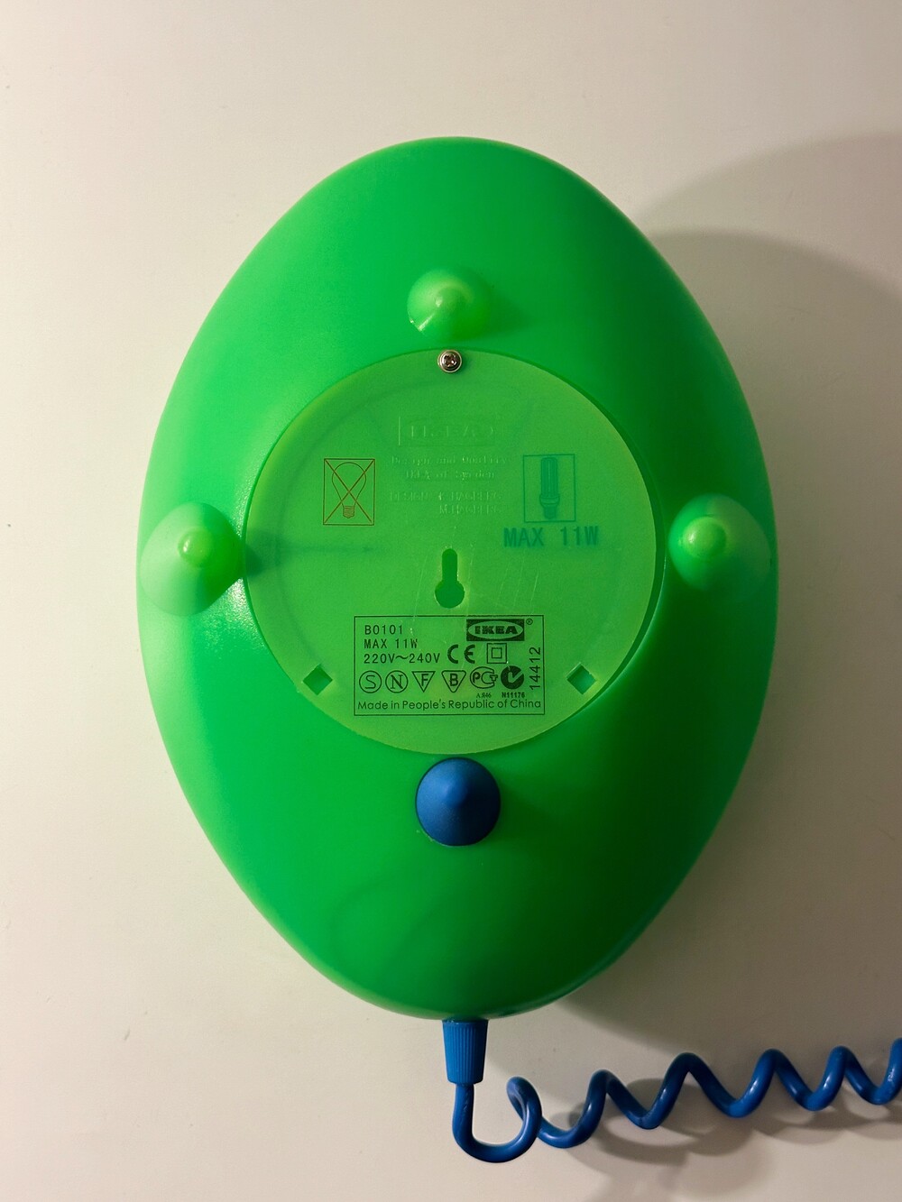 1990년대에 이케아 디자이너 Knut Hagberg와 Marianne Hagberg의 UFO 램프입니다. 우주선의 형태의 모양이며, 소재는 플라스틱 입니다. 컬러 조합이 재밌어요. 바디의 초록과 전선의 디테일 컬러까지 파랑. 💚💙