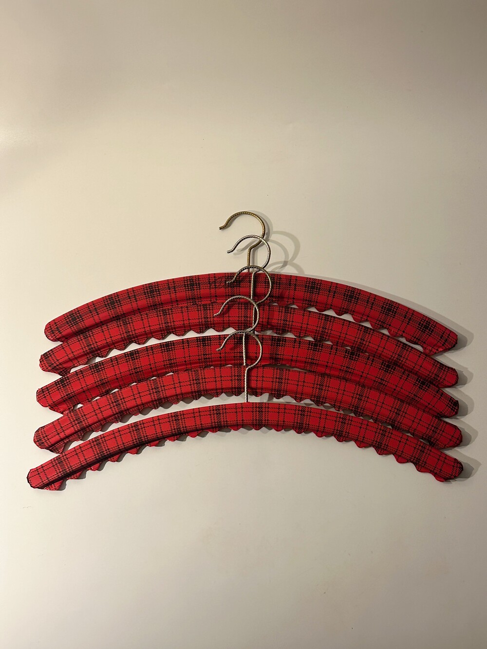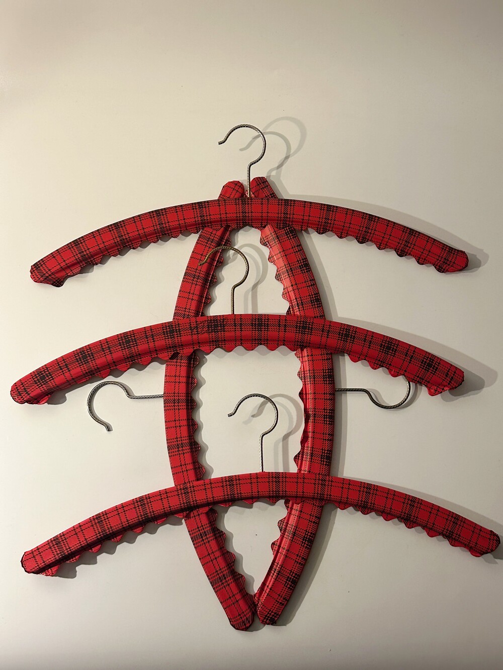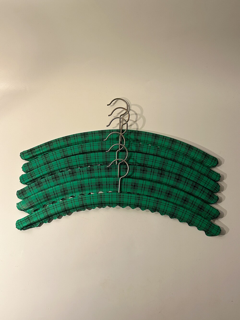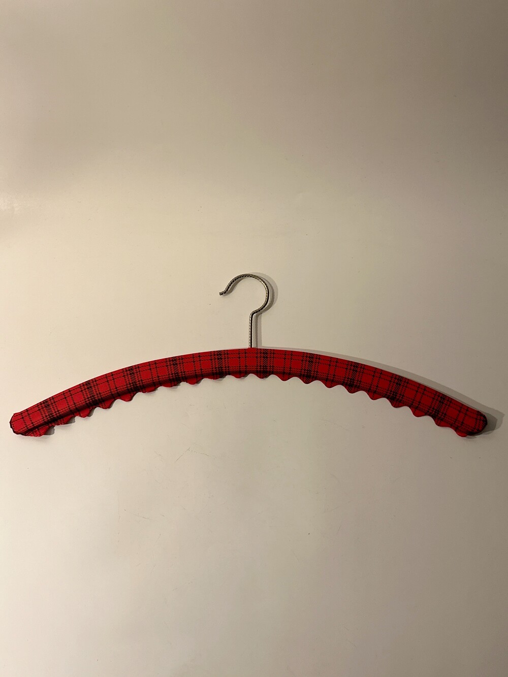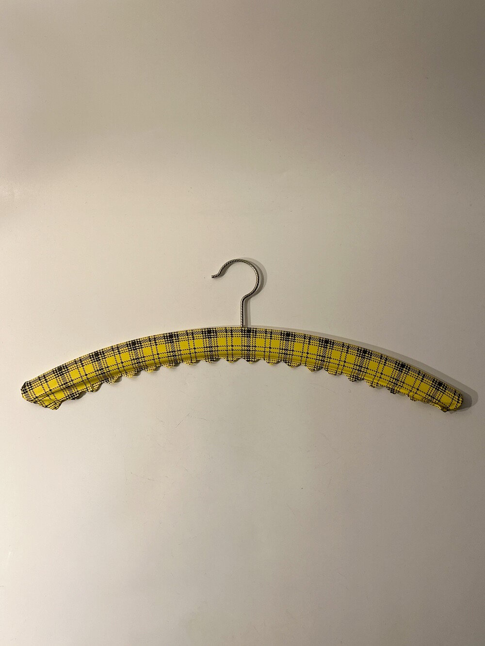 80년대 유럽에서 사랑받았던 빈티지 패디드 행거 입니다. 특유의 둥근 곡선과 푹신한 패디드, 그리고 클래식한 체크 패턴이 촌스러우면서 멋져보여요!