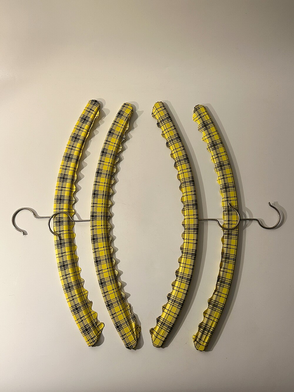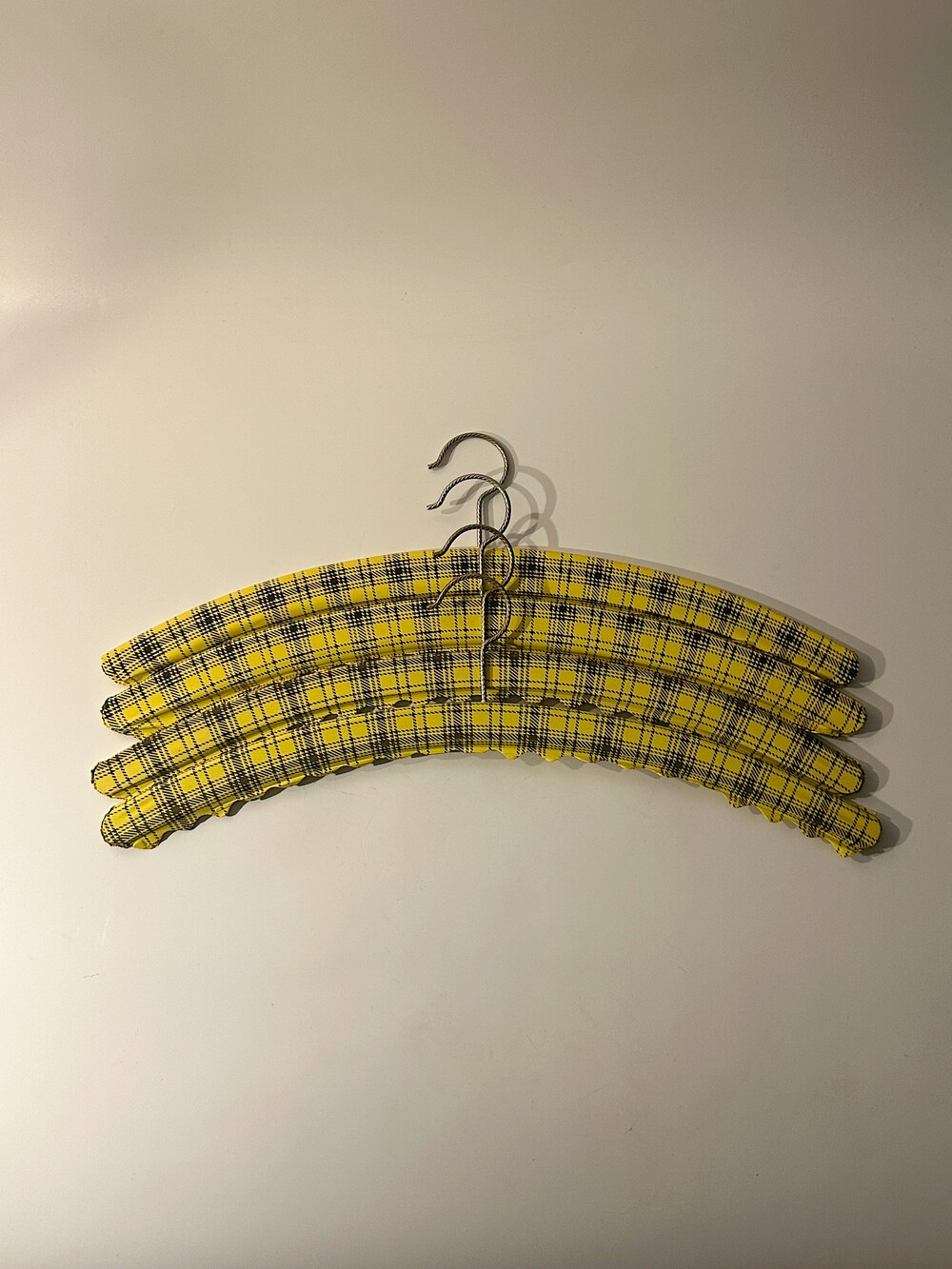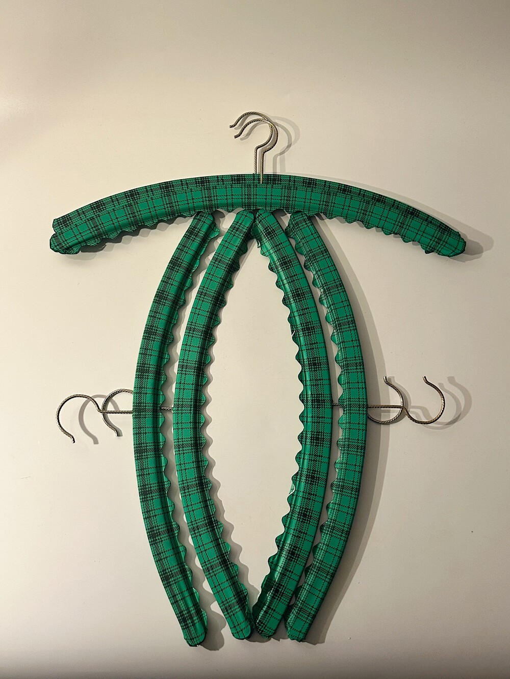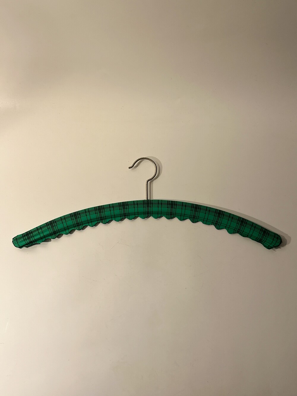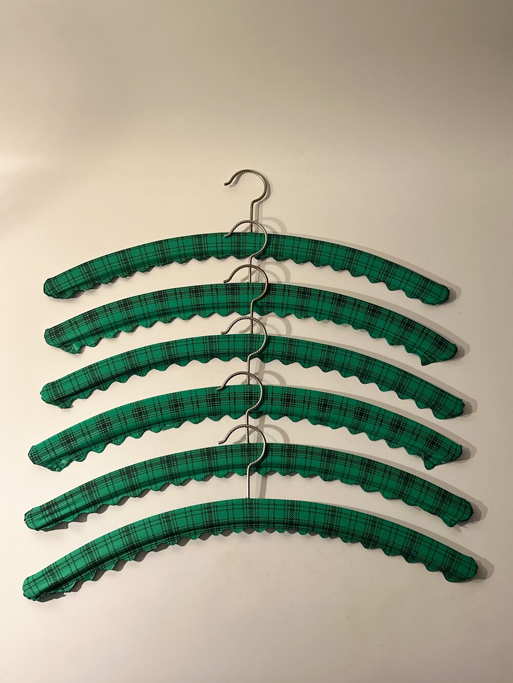 80년대 유럽에서 사랑받았던 빈티지 패디드 행거 입니다. 특유의 둥근 곡선과 푹신한 패디드, 그리고 클래식한 체크 패턴이 촌스러우면서 멋져보여요!