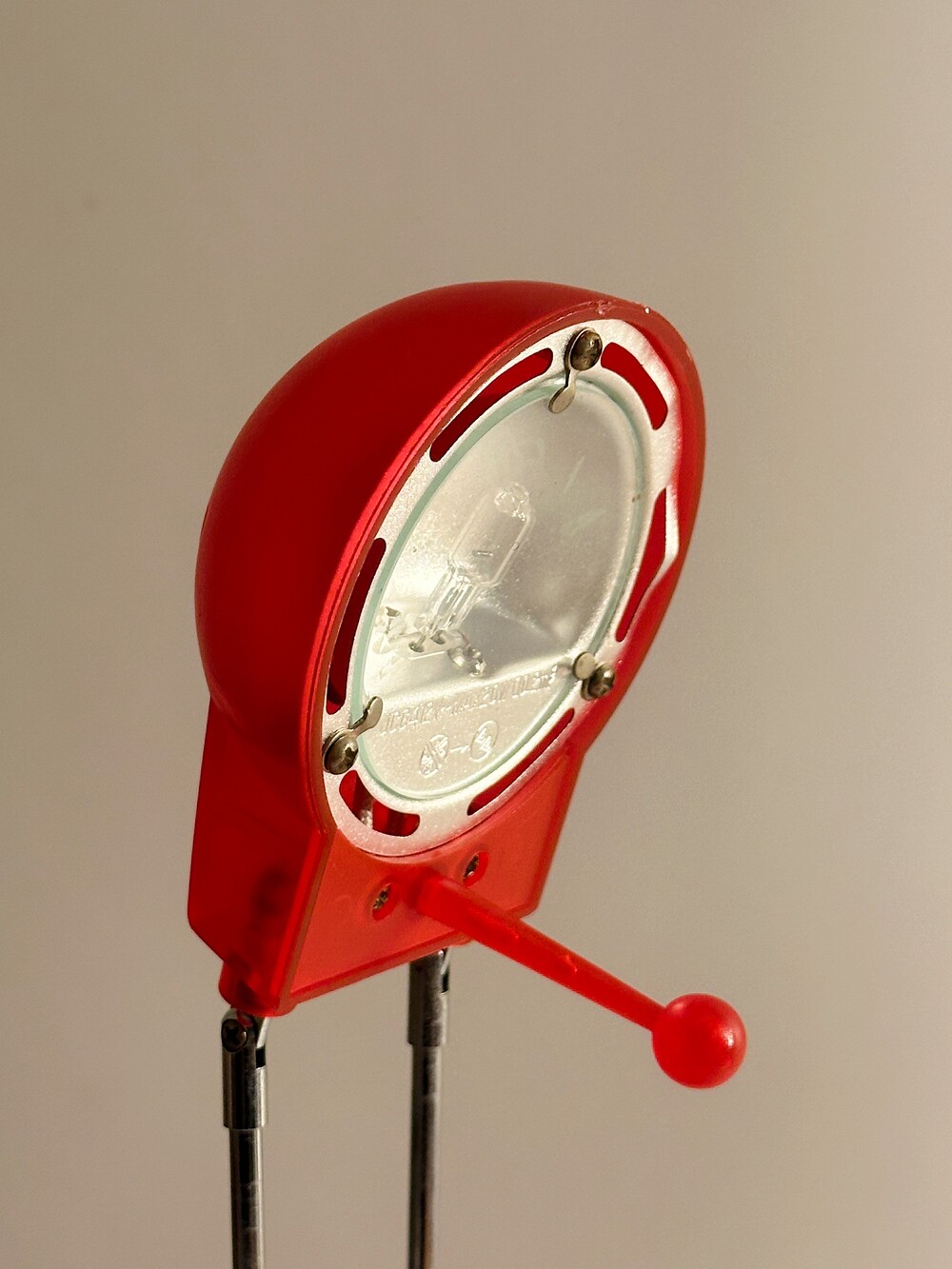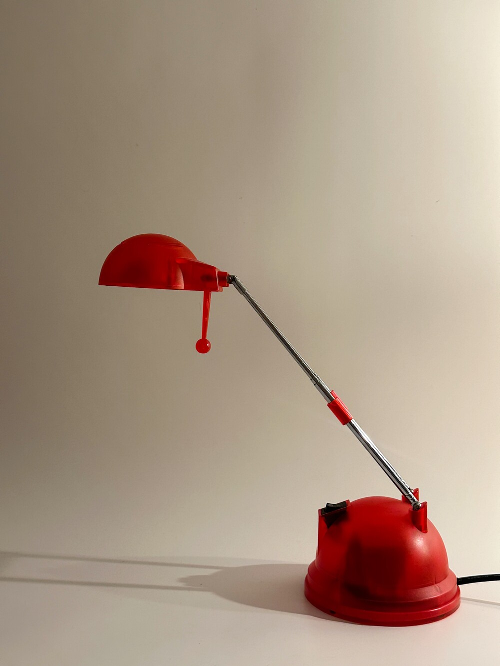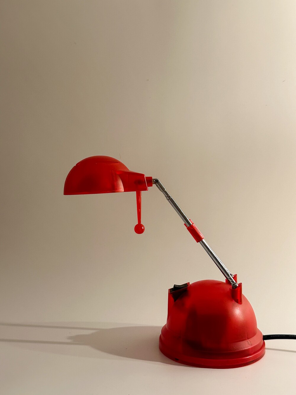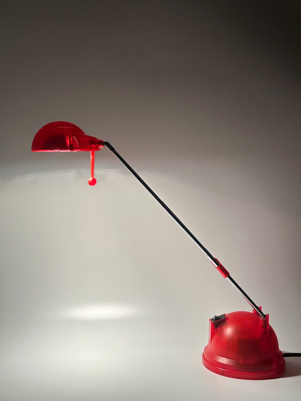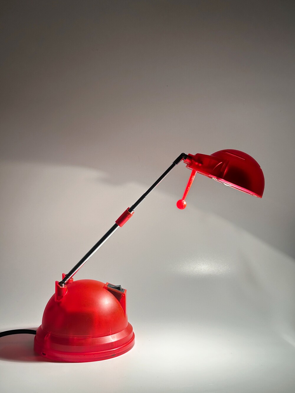 2000년대 독일에서 생산된 빈티지 테이블 텔레스코픽 조명이에요. 강렬한 레드 컬러에 내부가 살짝 보이는 투명한 스타일의 조명이에요. 헤드의 각도와 넥 부분을 통해 높이 조절이 자유로워서 다양하게 이용할 수 있습니다 ❤️