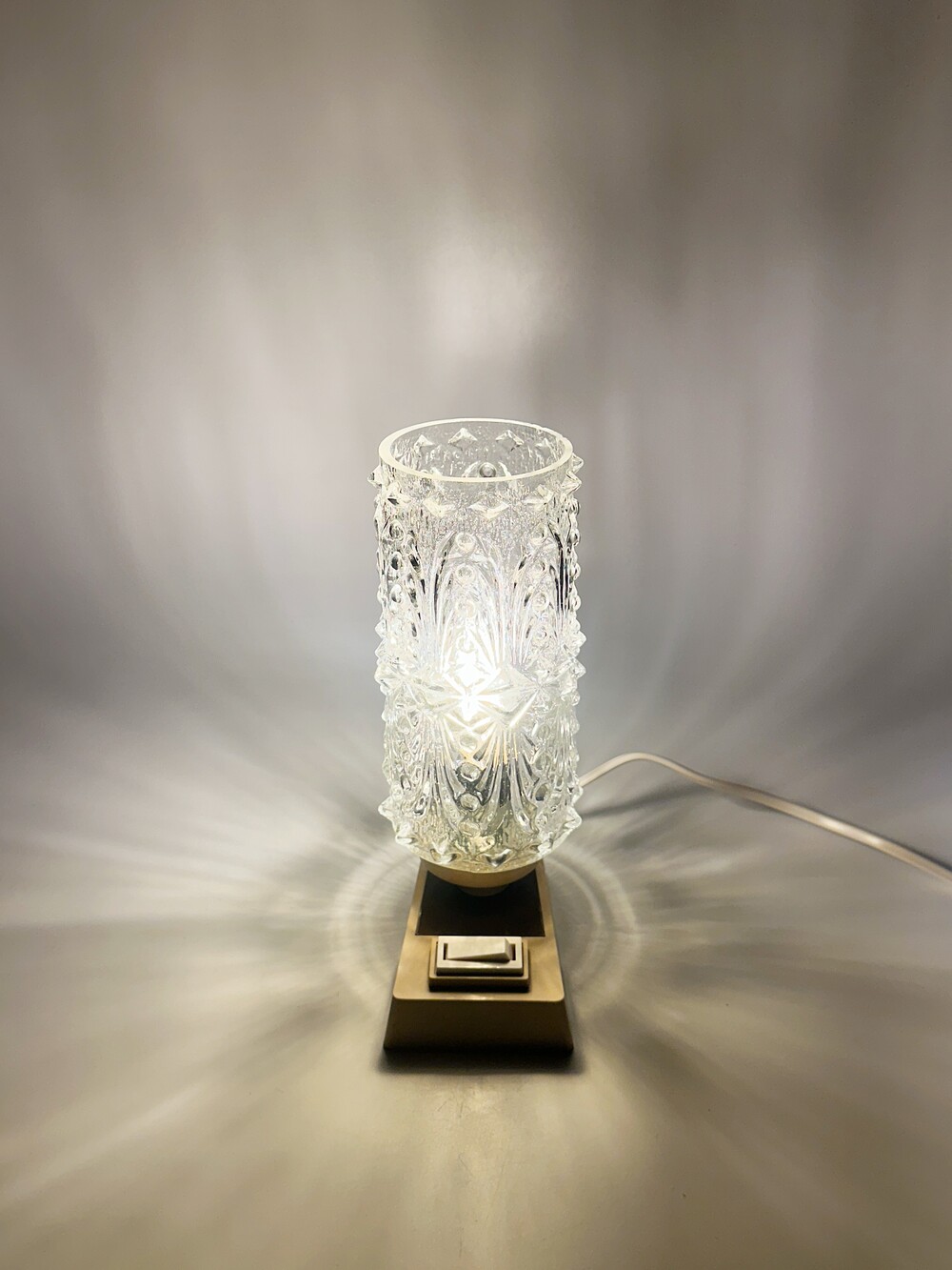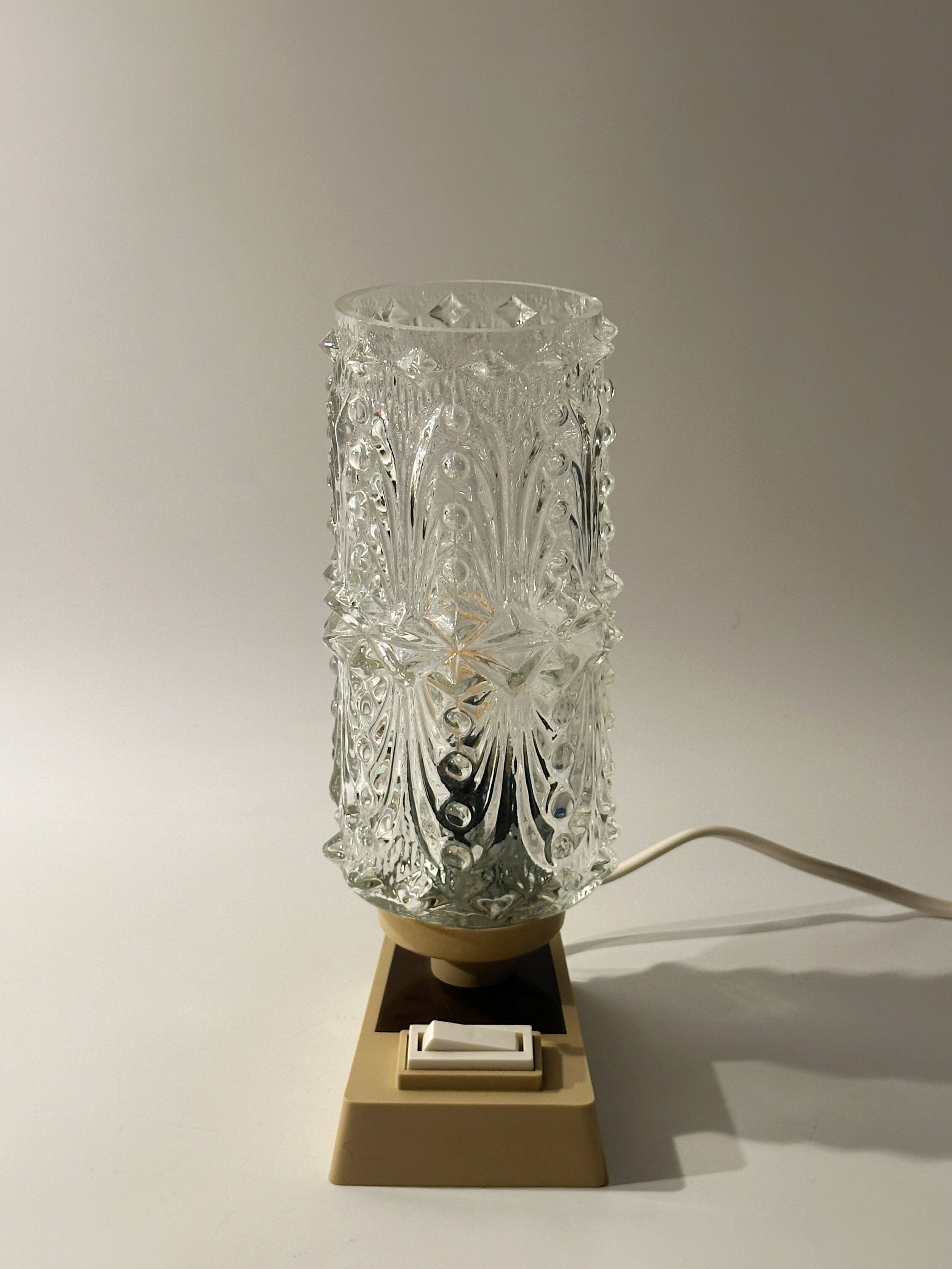80's Germany Vintage Table Glass Lamp Beige&Brown