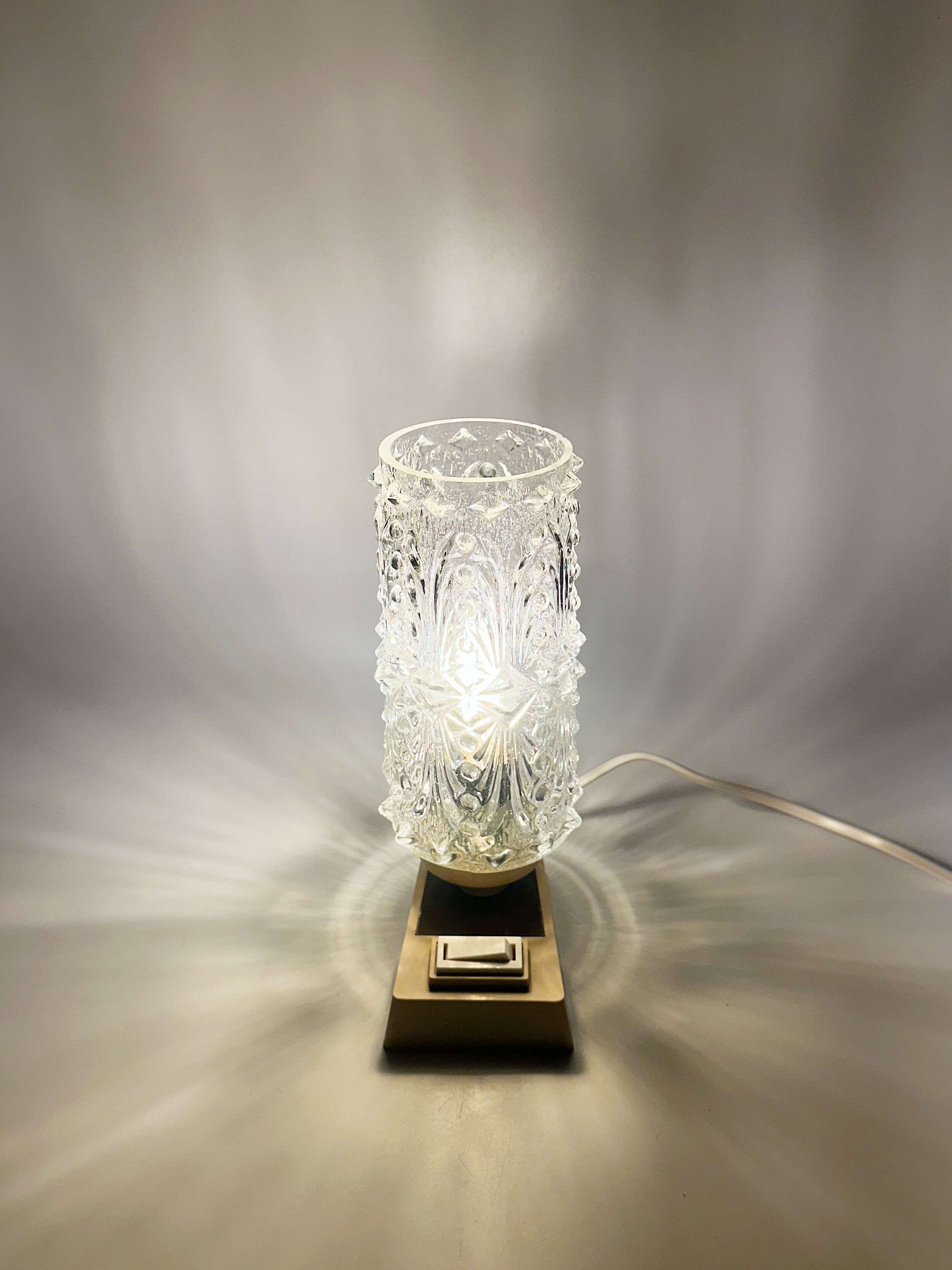 글래스를 자세히 보면 깊게 패인 오목한 문양과 별 모양 패턴들 덕문에 조명을 키는 순간 섬세한 레이스 커튼 같은 은은한 분위기를 만들어준답니다. 베이지와 브라운의 베이스 색감이 조화로운 빈티지 조명입니다. ✨✨✨✨✨